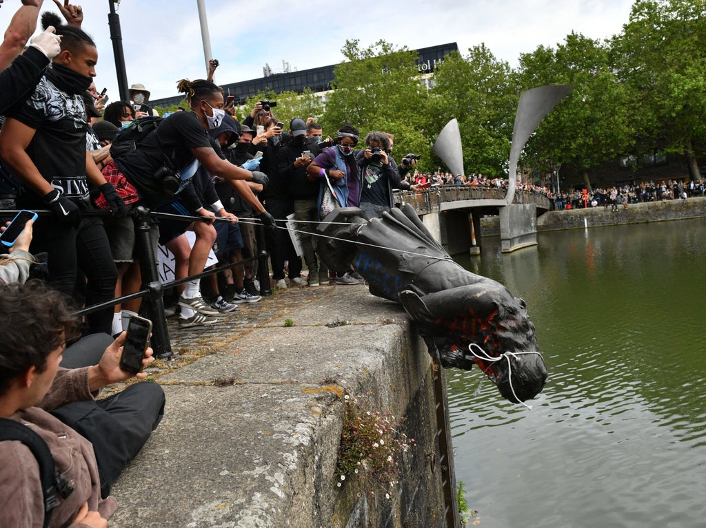 The bronze memorial to the 17th century slave merchant was pulled down during a protest on 7 June 2020, before being rolled into the city’s harbour.