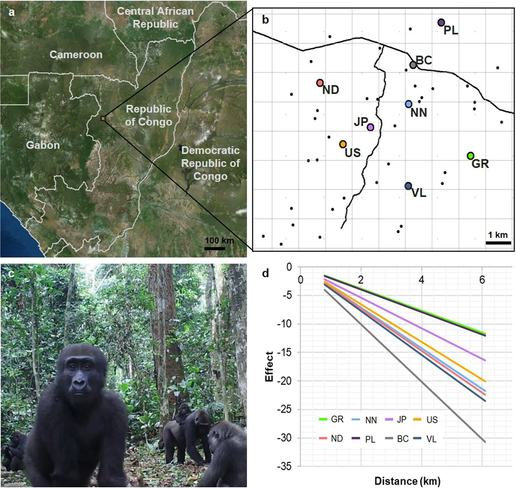 Abstract: The evolutionary origins of how modern humans share and use space are often modelled on the territorial-based violence of chimpanzees, with limited comparison to other apes. Gorillas are widely assumed to be non-territorial due to their large home ranges, extensive range overlap, and limited inter-group aggression. Using large-scale camera trapping, we monitored western gorillas in Republic of Congo across 60 km2. Avoidance patterns between groups were consistent with an understanding of the “ownership” of specific regions, with greater avoidance of their neighbours the closer they were to their neighbours’ home range centres. Groups also avoided larger groups’ home ranges to a greater extent, consistent with stronger defensive responses from more dominant groups. Our results suggest that groups may show territoriality, defending core regions of their home ranges against neighbours, and mirror patterns common across human evolution, with core areas of resident dominance and larger zones of mutual tolerance. This implies western gorillas may be a key system for understanding how humans have evolved the capacity for extreme territorial-based violence and warfare, whilst also engaging in the strong affiliative inter-group relationships necessary for large-scale cooperation.