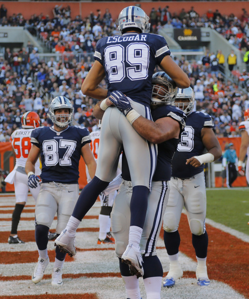 The Cowboys began to spread the wealth as Prescott threw a 2-yard touchdown to backup tight end Gavin Escobar, his first catch of the season, for a 35-10 lead in the third quarter.