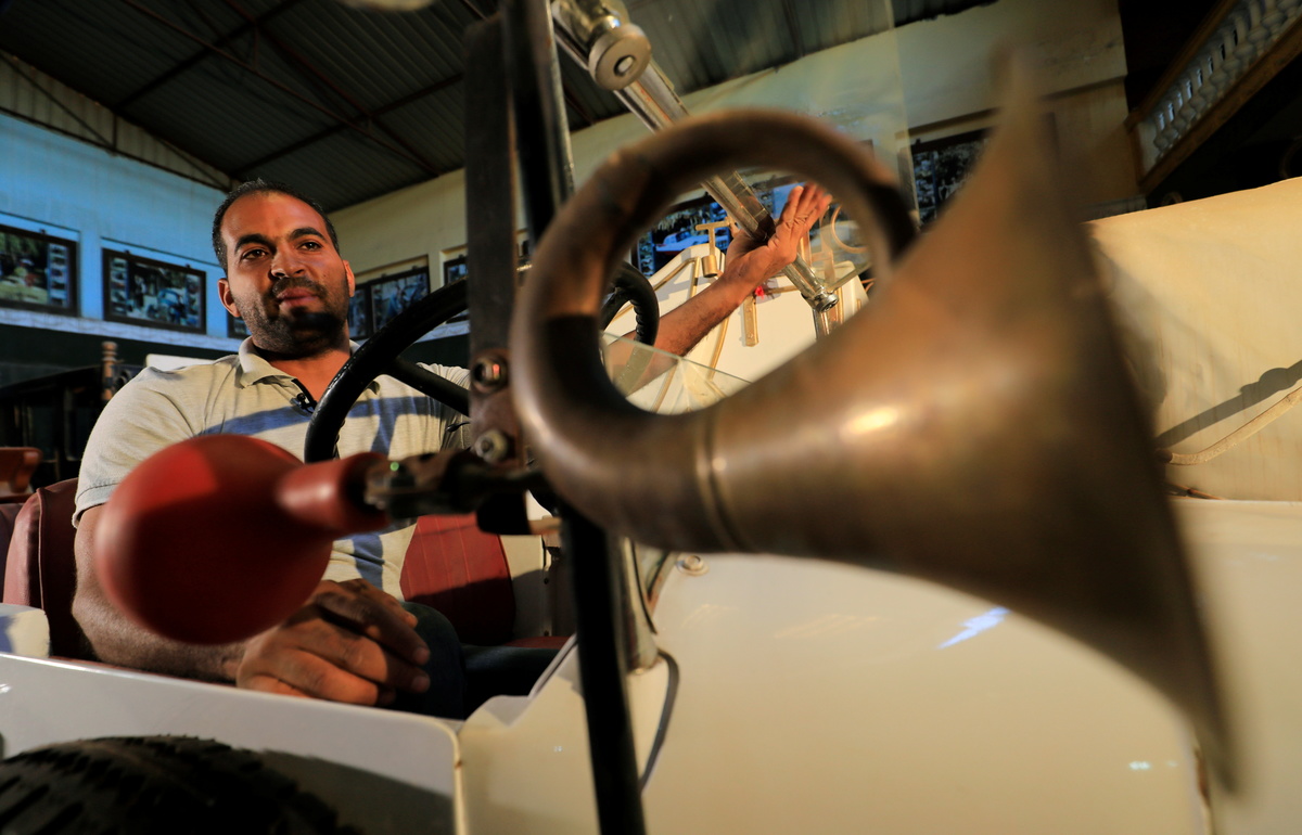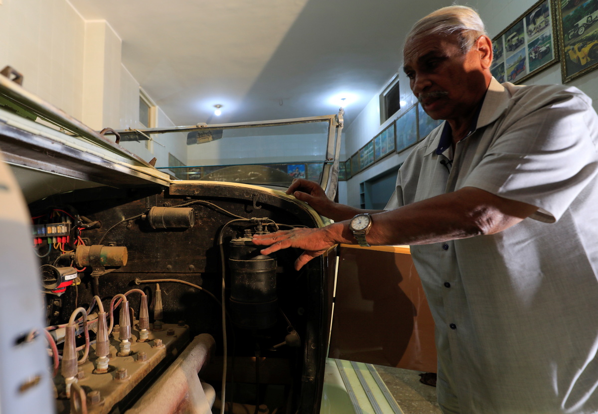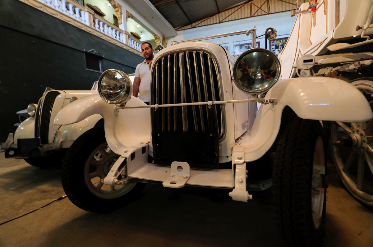 FILE PHOTO: Sayed Sima, a 70-years-old Egyptian collector of vintage cars, checks a 120-year-old American "1900 Auburn" automobile in his store where he also has his own exhibition of old cars, in the Giza suburb of Abu Rawash, Egypt October 25, 2020. REUTERS/Amr Abdallah Dalsh