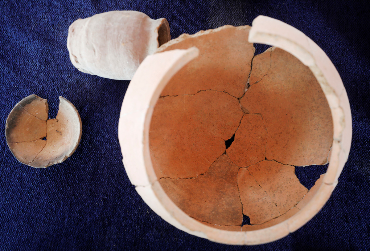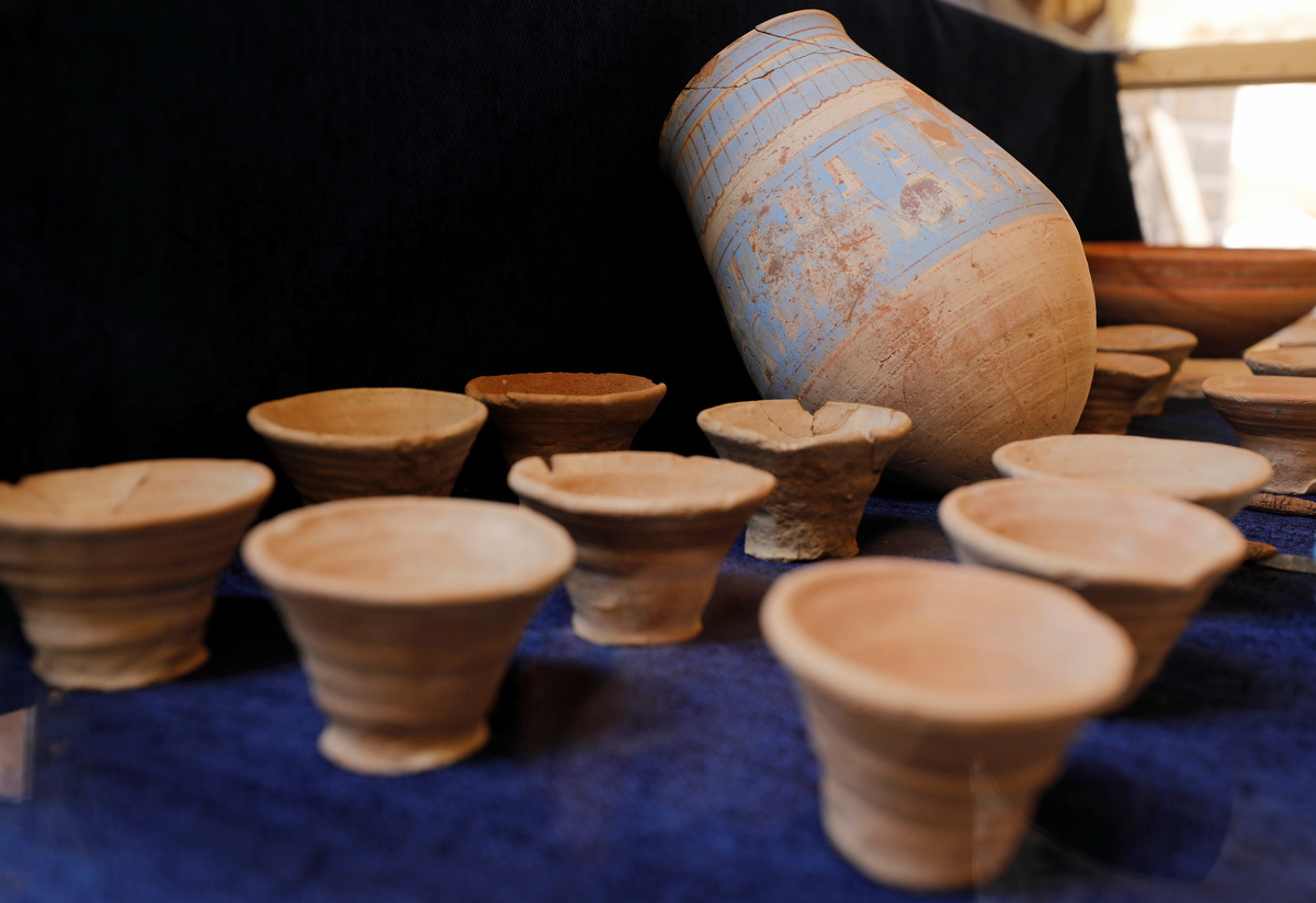 Artifacts are displayed during the presentation of a new discovery in the Monkey Valley near the Valley of the Kings in Luxor, Egypt October 10, 2019. REUTERS/Mohamed Abd El Ghany