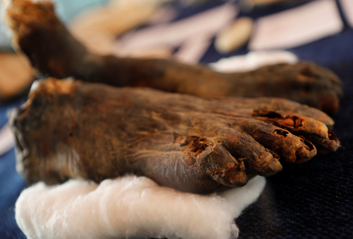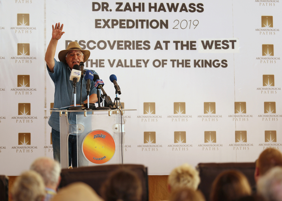 An Egyptian archaeologist works on objects discovered through an archaeological mission in the Monkey Valley near the Valley of the Kings in Luxor, Egypt October 10, 2019. REUTERS/Mohamed Abd El GhanyA silver ring is displayed during the presentation of a new discovery tin the Monkey Valley near the Valley of the Kings in Luxor, Egypt October 10, 2019. REUTERS/Mohamed Abd El GhanyAn Egyptian archaeologist works on objects discovered through an archaeological mission in the Monkey Valley near the Valley of the Kings in Luxor, Egypt October 10, 2019. REUTERS/Mohamed Abd El GhanyA silver ring is displayed during the presentation of a new discovery in the Monkey Valley near the Valley of the Kings in Luxor, Egypt October 10, 2019. REUTERS/Mohamed Abd El GhanyMummified onions is displayed during the presentation of a new discovery in the Monkey Valley near the Valley of the Kings in Luxor, Egypt October 10, 2019. REUTERS/Mohamed Abd El GhanyA mummy's feet are displayed during the presentation of a new discovery in the Monkey Valley near the Valley of the Kings in Luxor, Egypt October 10, 2019. REUTERS/Mohamed Abd El GhanyAn artifact is displayed during the presentation of a new discovery in the Monkey Valley near the Valley of the Kings in Luxor, Egypt October 10, 2019. REUTERS/Mohamed Abd El GhanyArtifacts are displayed during the presentation of a new discovery in the Monkey Valley near the Valley of the Kings in Luxor, Egypt October 10, 2019. REUTERS/Mohamed Abd El GhanyFormer Tourism Minister Zahi Hawass, speaks during a press conference in the Monkey Valley near the Valley of the Kings in Luxor, Egypt October 10, 2019. REUTERS/Mohamed Abd El Ghany