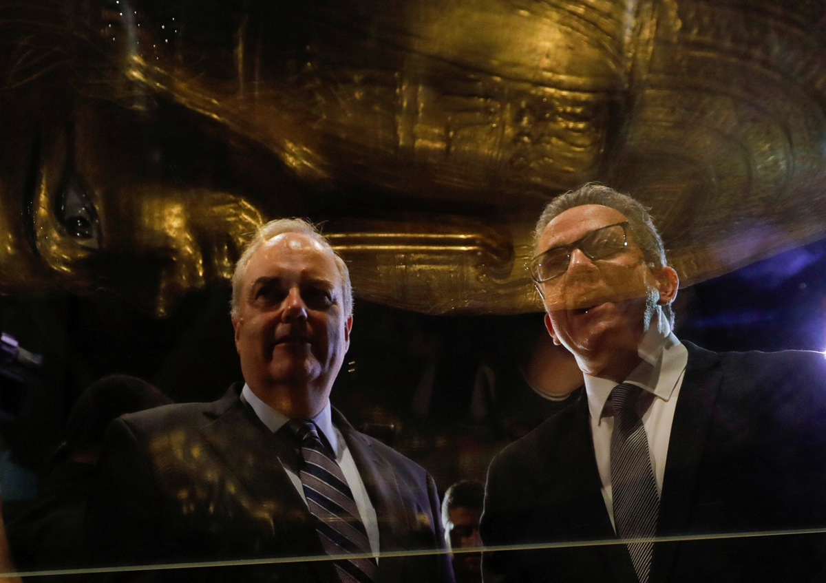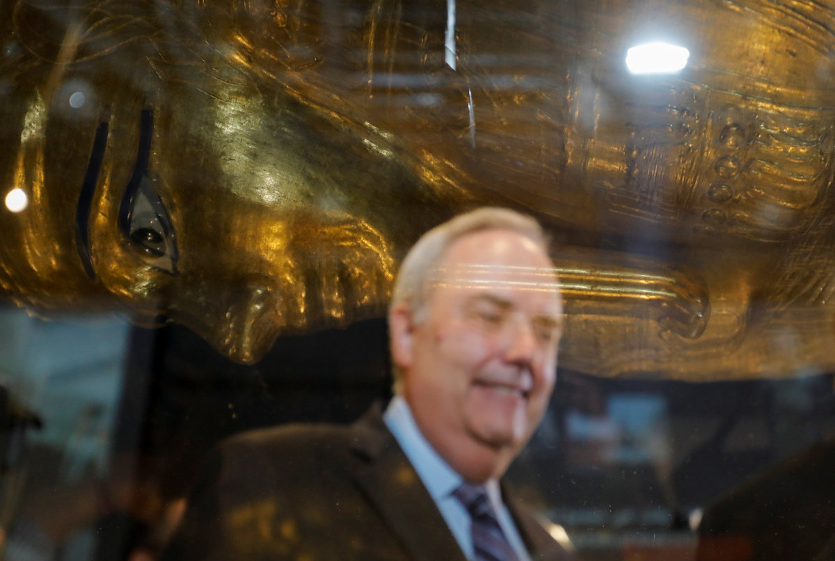 US Charge d'Affaires in Cairo Thomas Goldberger looks at the Gold Coffin of Nedjemankh during a news conference to announce its return from the U.S. and display at the National Museum of Egyptian Civilization (NMEC) in Cairo, Egypt October 1, 2019. REUTERS/Amr Abdallah Dalsh