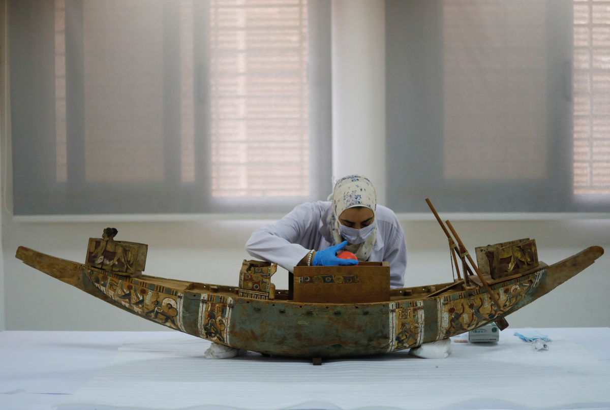 An Egyptian archaeological technician works at the National Museum of Egyptian Civilization (NMEC) in Cairo, Egypt October 1, 2019. REUTERS/Amr Abdallah Dalsh