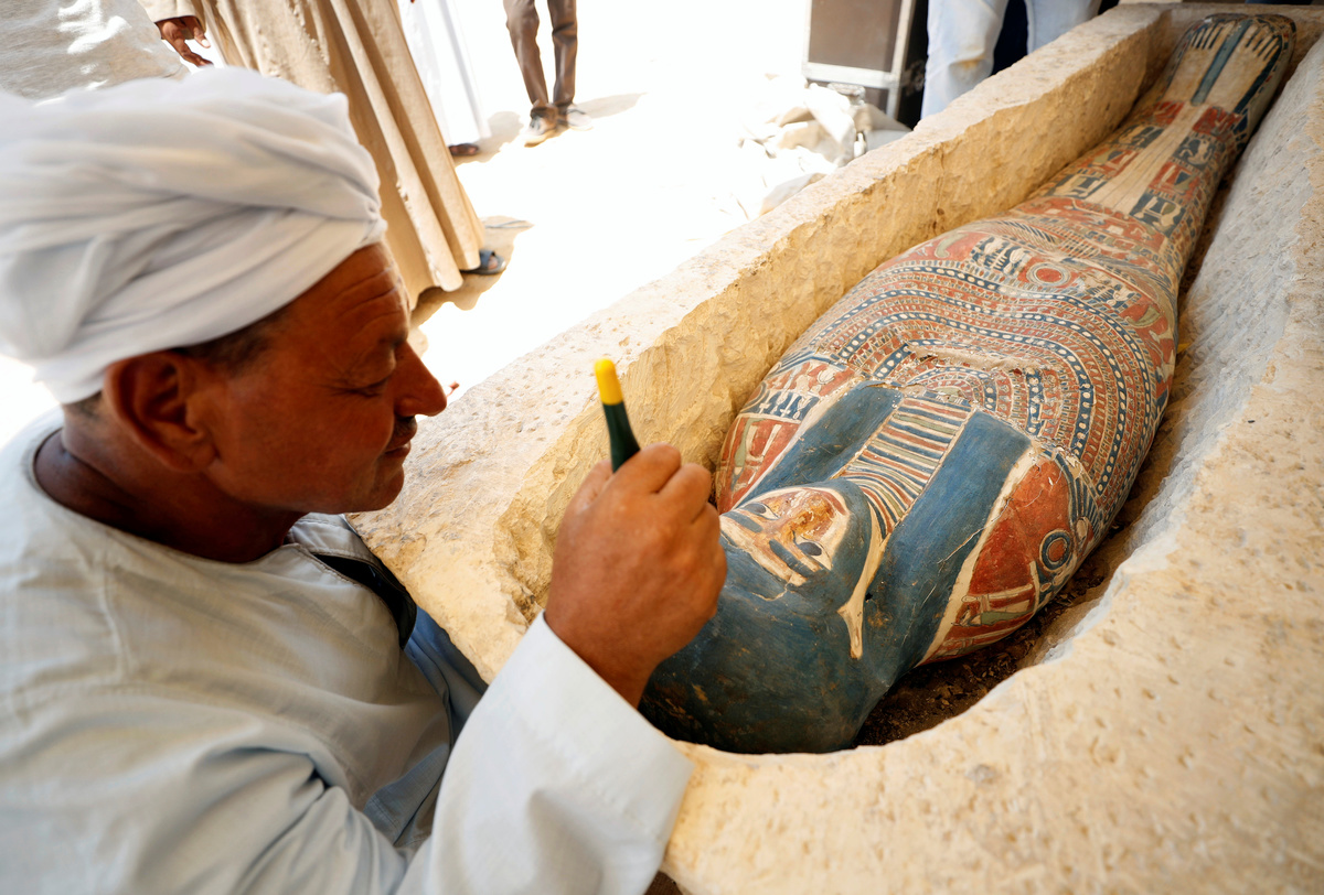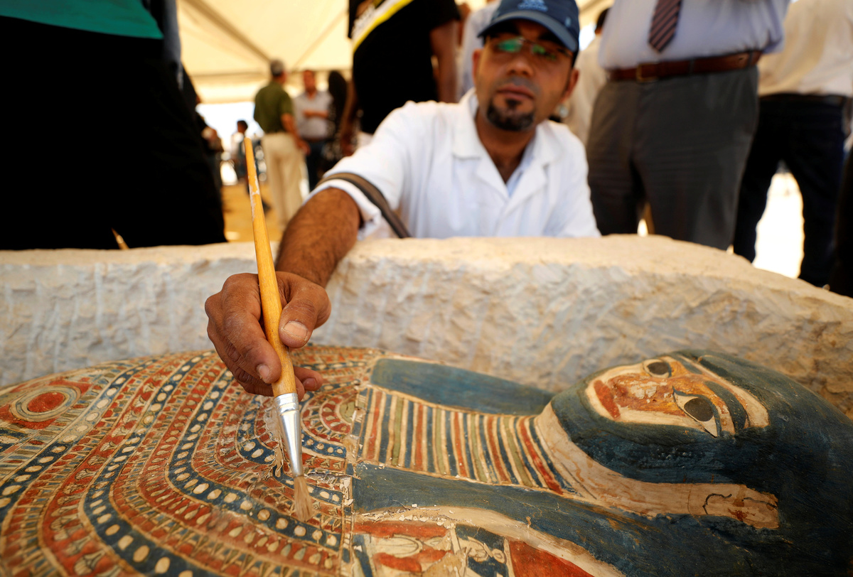 As they opened the pyramids, archaeologists presented late-period mummies, masks, tools and coffins discovered during excavations that began near the Dahshur pyramids last year and are due to continue.