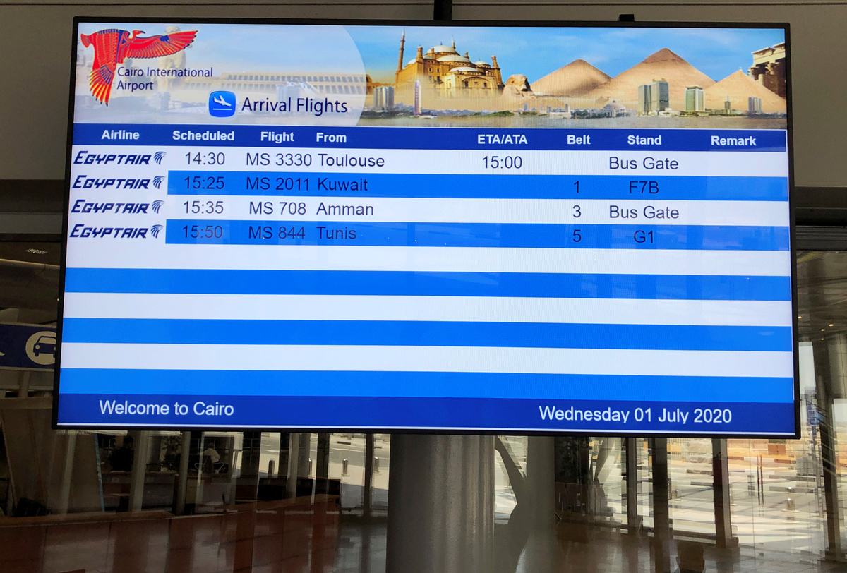 Meanwhile, 16 flights took off from Cairo International Airport on Wednesday, the aviation minister said. Two arrival terminals were empty in the morning but a screen showed four scheduled flights expected to arrive from Toulouse, Kuwait, Tunis and Amman.