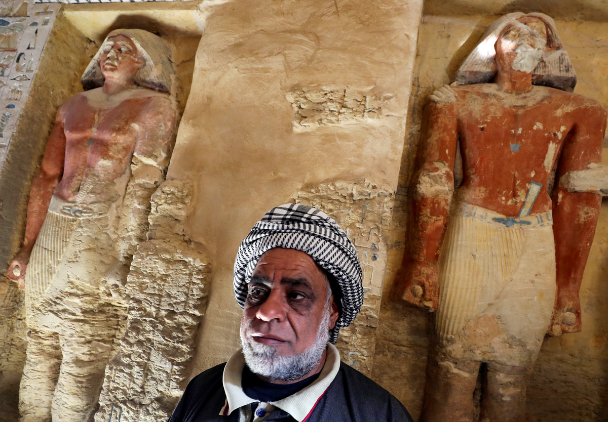 A view of a wall of the newly-discovered tomb of 'Wahtye', which dates from the rule of King Neferirkare Kakai, at the Saqqara area near its necropolis, in Giza, Egypt, December 15, 2018. REUTERS/Mohamed Abd El GhanyA view of the newly-discovered tomb of 'Wahtye', which dates from the rule of King Neferirkare Kakai, at the Saqqara area near its necropolis, in Giza, Egypt, December 15, 2018. REUTERS/Mohamed Abd El GhanyA view of statues inside the newly-discovered tomb of 'Wahtye', which dates from the rule of King Neferirkare Kakai, at the Saqqara area near its necropolis, in Giza, Egypt, December 15, 2018. REUTERS/Mohamed Abd El GhanyA statue is seen inside the newly-discovered tomb of 'Wahtye', which dates from the rule of King Neferirkare Kakai, at the Saqqara area near its necropolis, in Giza, Egypt, December 15, 2018. REUTERS/Mohamed Abd El GhanyA view of statues inside the newly-discovered tomb of 'Wahtye', which dates from the rule of King Neferirkare Kakai, at the Saqqara area near its necropolis, in Giza, Egypt, December 15, 2018. REUTERS/Mohamed Abd El GhanyJournalists take photos inside the newly-discovered tomb of 'Wahtye', which dates from the rule of King Neferirkare Kakai, at the Saqqara area near its necropolis, in Giza, Egypt, December 15, 2018. REUTERS/Mohamed Abd El GhanyA view of statues inside the newly-discovered tomb of 'Wahtye', which dates from the rule of King Neferirkare Kakai, at the Saqqara area near its necropolis, in Giza, Egypt, December 15, 2018. REUTERS/Mohamed Abd El GhanyA view of statues inside the newly-discovered tomb of 'Wahtye', which dates from the rule of King Neferirkare Kakai, at the Saqqara area near its necropolis, in Giza, Egypt, December 15, 2018. REUTERS/Mohamed Abd El Ghany