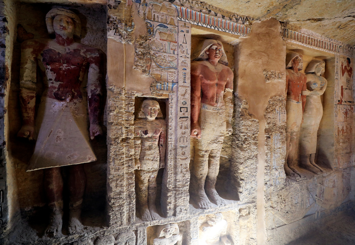 SAQQARA, Egypt (Reuters) - Egypt unveiled a well-preserved 4,400-year-old tomb decorated with hieroglyphs and statues south of Cairo on Saturday, and officials expect more discoveries when archaeologists excavate the site further in coming months.