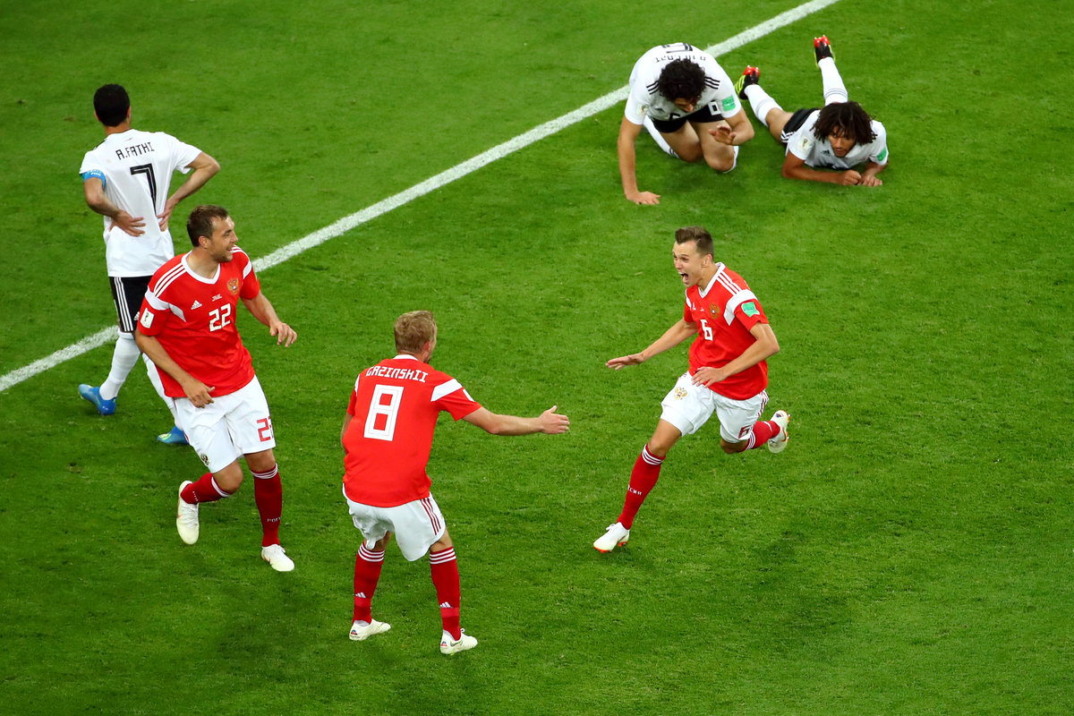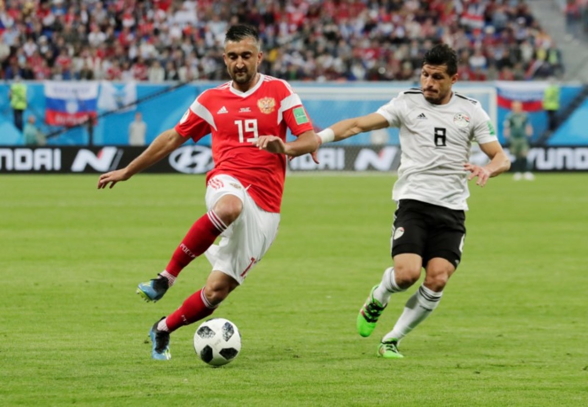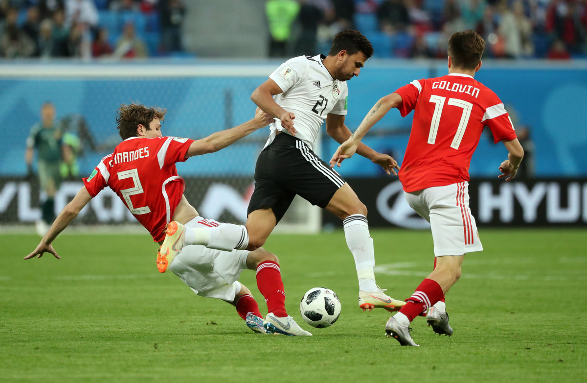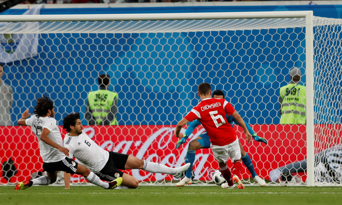 Aleksandr Golovin's cross was punched out by Egyptian keeper Mohamed El-Shenawy, only as far as Roman Zobnin whose low drive was heading wide until Ahmed Fathi's outstretched leg turned the ball into his own net.