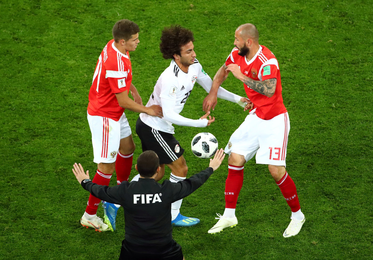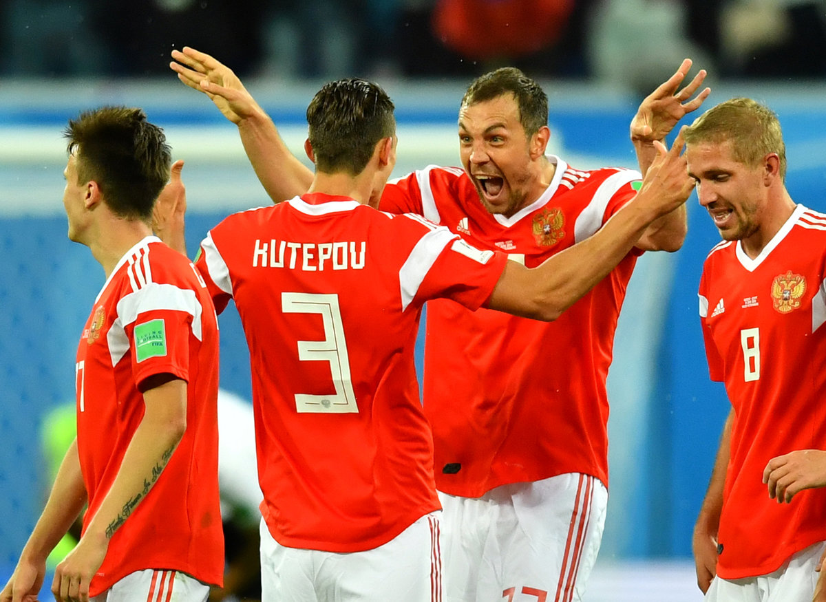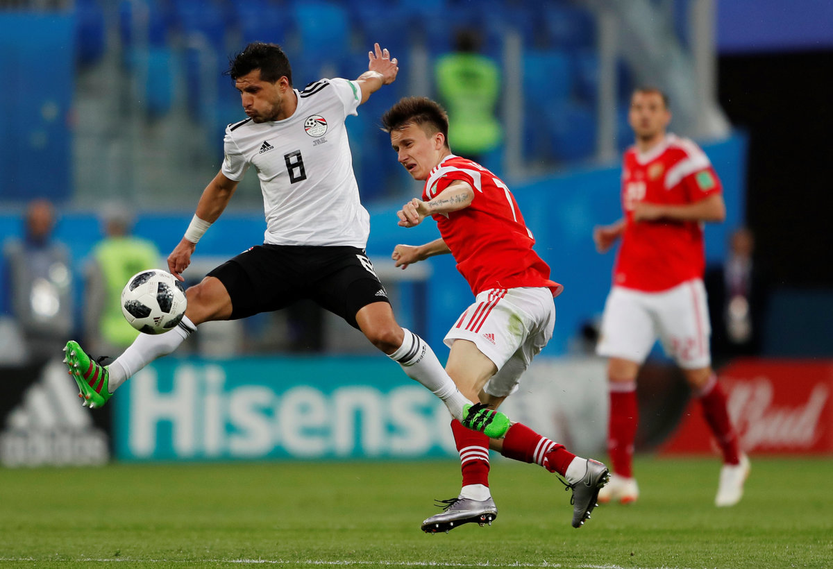 Aleksandr Golovin's cross was punched out by Egyptian keeper Mohamed El-Shenawy, only as far as Roman Zobnin whose low drive was heading wide until Ahmed Fathi's outstretched leg turned the ball into his own net.
