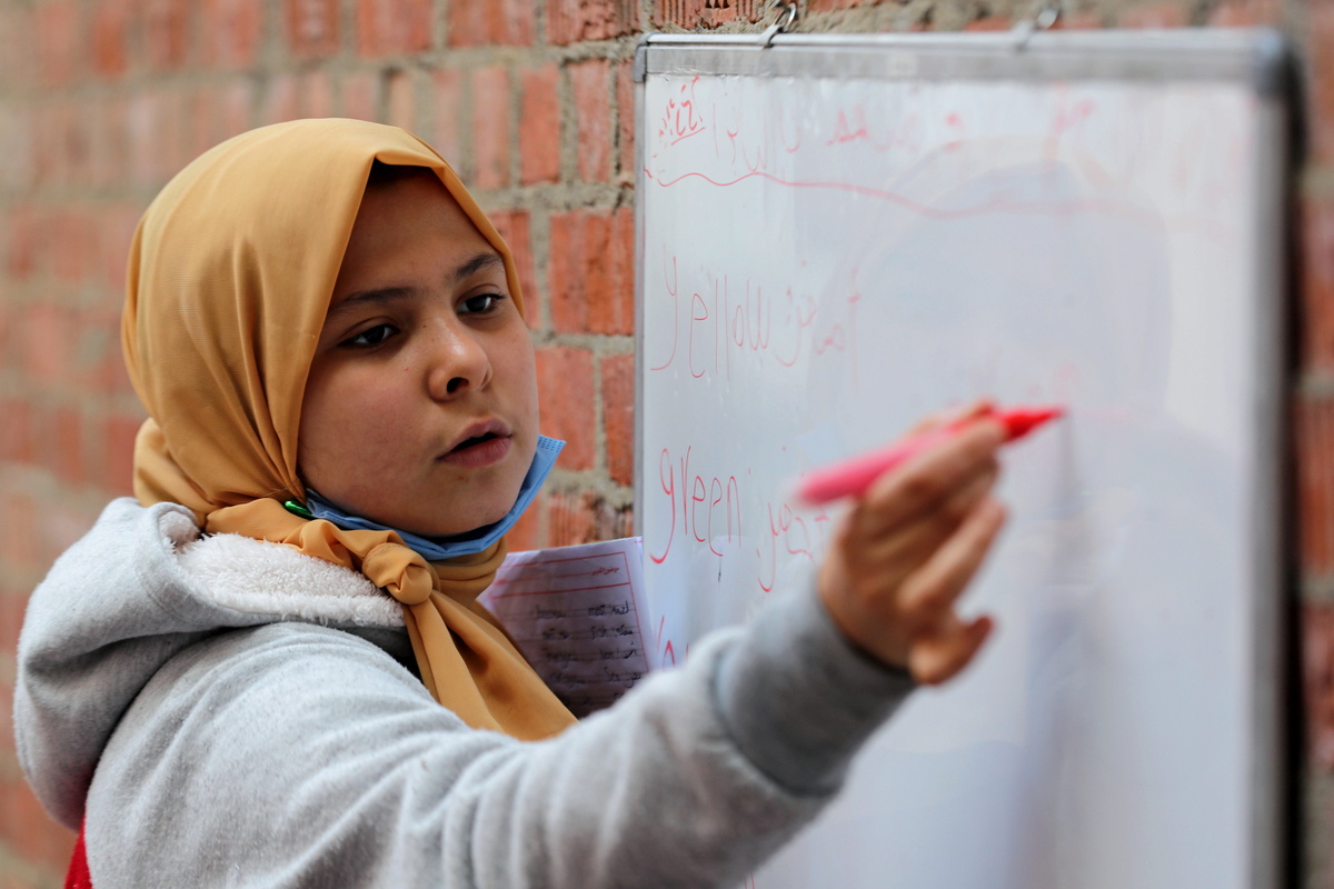 Their teacher is 12-year-old Reem El-Khouly, who started offering instruction to her younger neighbours in Atmidah, about 80 km (50 miles) northeast of Cairo, when schools across Egypt were shut due to the coronavirus pandemic.