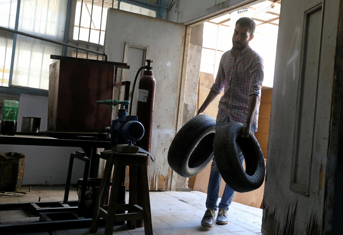 Egyptian students produce fuel from used car tyres