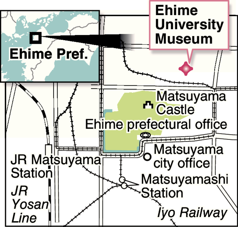 The museum is located on Ehime University's Johoku Campus, which is a 20-minute streetcar ride from JR Matsuyama Station and a five-minute walk. Only researchers can enter the specimen room, but part of the collection is on permanent exhibit. This year's exhibition will be Aug. 8-12.