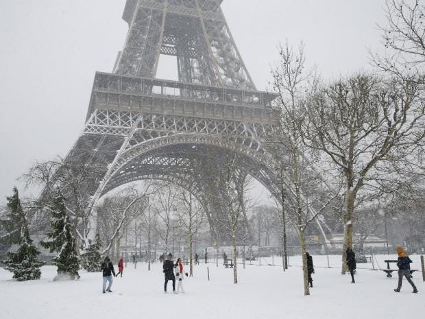 The Eiffel Tower was closed as snow and freezing rain hammered France.