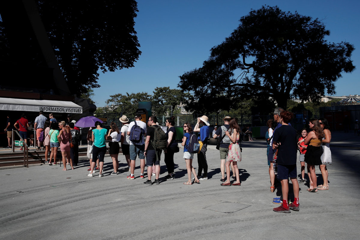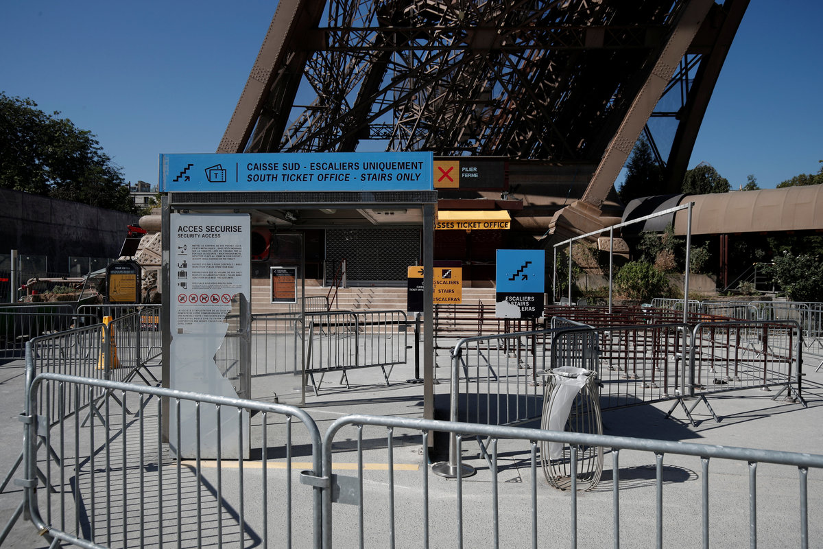 A sign announcing the closure of the Eiffel Tower is seen at a closed ticket sales counter as part of a strike by employees over lengthening queues during the peak summer tourist season in Paris, France, August 2, 2018. REUTERS/Benoit TessierThe Eiffel Tower is seen from below on a summer day in Paris, France, August 2, 2018. REUTERS/Benoit TessierA sign announcing the closure of the Eiffel Tower is seen at a closed ticket sales counter as part of a strike by employees over lengthening queues during the peak summer tourist season in Paris, France, August 2, 2018. REUTERS/Benoit TessierPeople stand in line at an information booth following the closure of the Eiffel Tower as part of a strike by employees over lengthening queues during the peak summer tourist season in Paris, France, August 2, 2018. REUTERS/Benoit TessierPeople stand in line at an visitors information booth following the closure of the Eiffel Tower as part of a strike by employees over lengthening queues during the peak summer tourist season in Paris, France, August 2, 2018. REUTERS/Benoit TessierA sign announcing the closure of the Eiffel Tower is seen at a closed ticket sales counter as part of a strike by employees over lengthening queues during the peak summer tourist season in Paris, France, August 2, 2018. REUTERS/Benoit Tessier