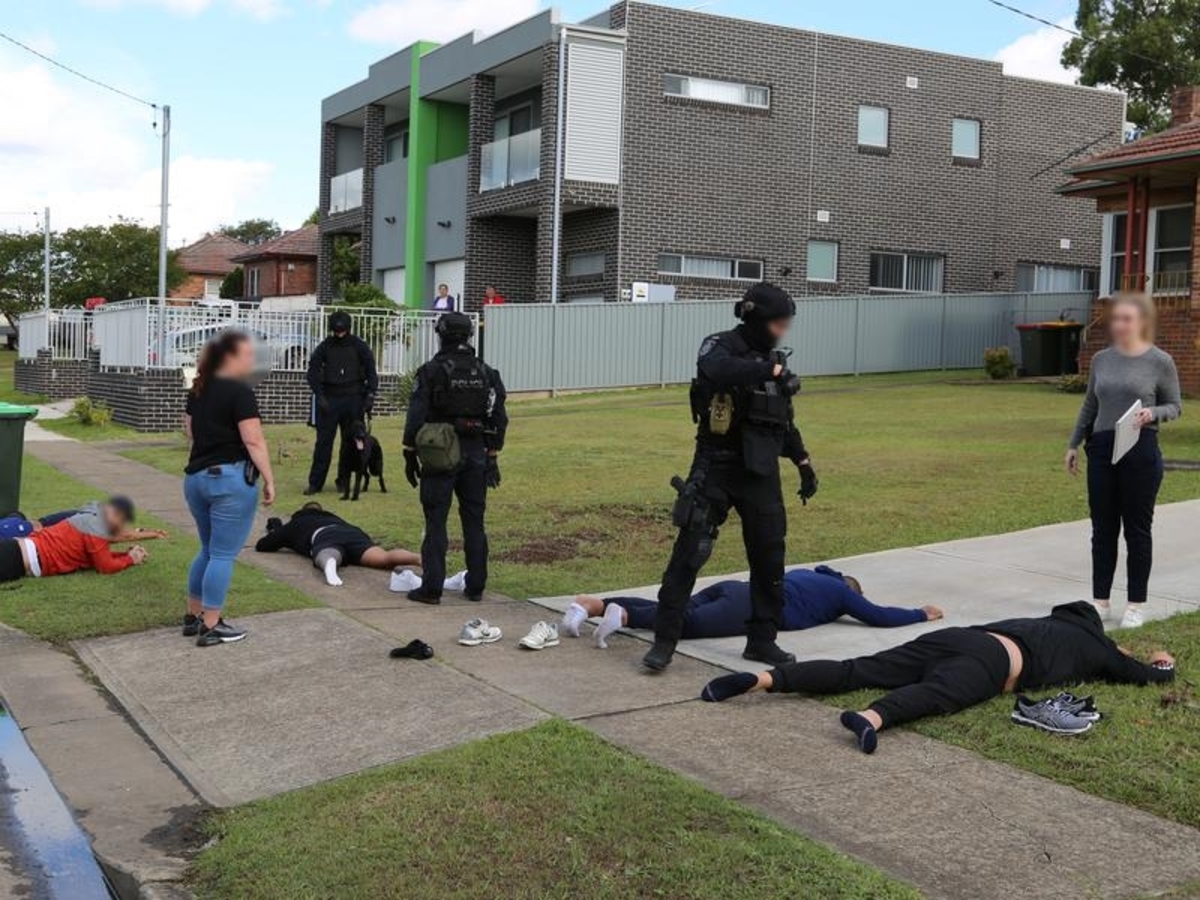 A South Wentworthville home was also raided by police on Wednesday, with six men aged between 23 and 45 and a 45-year-old woman arrested.