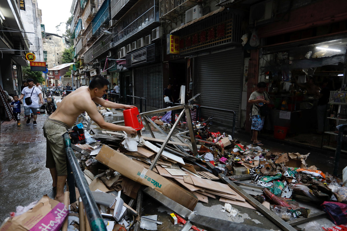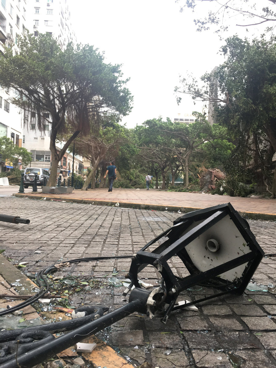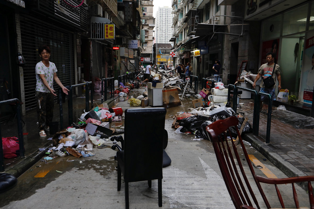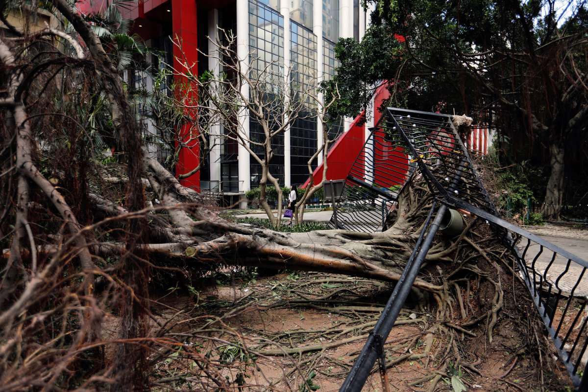 Damaged wall and pier by typhoon Hato are seen at Macau Fisherman's Wharf Hoyle in Macau, China August 24, 2017. REUTERS/Tyrone SiuA man cleans his store after Typhoon Hato hit in Macau, China August 24, 2017. REUTERS/Tyrone SiuA man reacts in front of his store after Typhoon Hato hit in Macau, China August 24, 2017. REUTERS/Tyrone SiuTourists from China lineup outside a jewelry shop where a tree was uprooted by strong winds from Typhoon Hato in Macau, China August 24, 2017. REUTERS/Tyrone SiuFallen trees and debris are seen on a road following Typhoon Hato in Macau, China, August 24, 2017 in this picture obtained from social media. Karen Yung via REUTERS A vehicle is seen floating on the sea after Typhoon Hato hits Macau, China August 24,2017 REUTERS/Tyrone SiuA man holds an umbrella against winds brought by Typhoon Hato in Foshan, Guangdong province, China August 23, 2017. REUTERS/Stringer Debris and damaged trees are seen following Typhoon Hato in Old Macau, Macau, China, August 23, 2017 in this picture obtained from social media. Deo Carmel Viste via REUTERS A man rides his scooter past uprooted trees after Typhoon Hato hits Zhongshan, Guangdong province, China August 23, 2017. REUTERS/Stringer People walk through a flooded street as Typhoon Hato hits Dongguan, Guangdong province, China August 23, 2017. REUTERS/Stringer Debris is seen following Typhoon Hato in Old Macau, Macau, China, August 23, 2017 in this picture obtained from social media. Deo Carmel Viste via REUTERS Debris is seen following Typhoon Hato in Old Macau, Macau, China, August 23, 2017 in this picture obtained from social media. Deo Carmel Viste via REUTERS People stand on a pile of sand bags at an entrance of a garage at a flooded area after Typhoon Hato hits Dongguan, Guangdong province, China August 23, 2017. REUTERS/Stringer A fallen tree is seen next to traffic along a road following Typhoon Hato in Macau, China, August 24, 2017 in this picture obtained from social media. Karen Yung via REUTERS Fallen trees are seen along a street in Macau during Typhoon Hato, in this still image taken from social media video obtained by Reuters August 24, 2017. Karen Yung/via REUTERS A storm batters a street in Macau during Typhoon Hato, in this still image taken from social media video obtained by Reuters August 24, 2017. Deo Carmel Viste/via REUTERS A storm batters a street in Macau during Typhoon Hato, in this still image taken from social media video obtained by Reuters August 24, 2017. Deo Carmel Viste/via REUTERS Scooters lie on a road following Typhoon Hato in Old Macau, Macau, China, August 23, 2017 in this picture obtained from social media. Deo Carmel Viste via REUTERS Fallen trees and debris are seen on a road following Typhoon Hato in Macau, China, August 24, 2017 in this picture obtained from social media. Karen Yung via REUTERS A bus drives past tree branches and debris along a street in Macau during Typhoon Hato, in this still image taken from social media video obtained by Reuters August 24, 2017. Deo Carmel Viste/via REUTERS