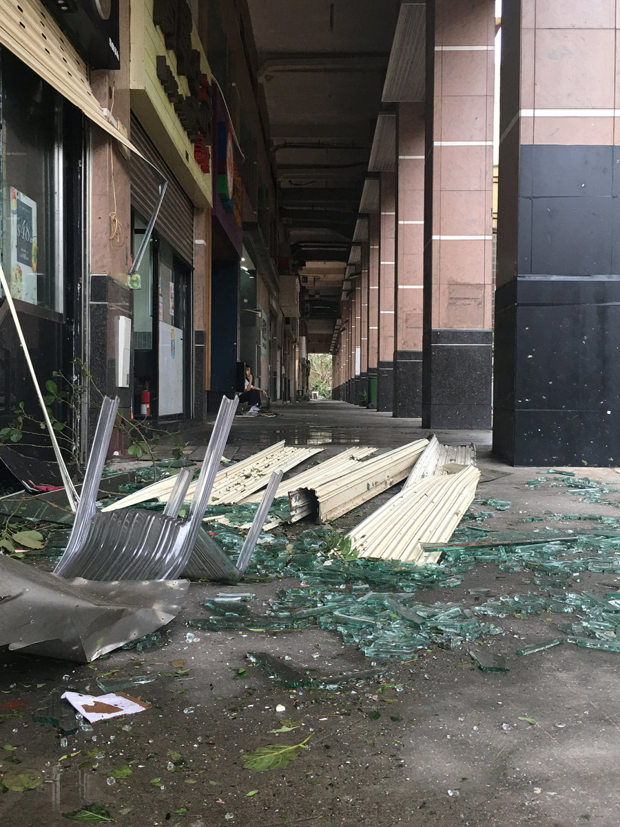 Exteriors of buildings, including parts of multi-billion dollar casinos, were ripped away by Hato's powerful winds.