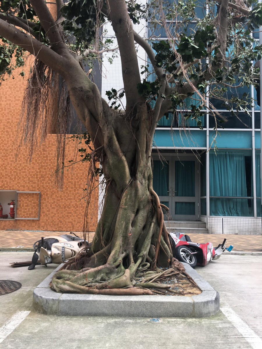 A tree that was uprooted by strong winds from Typhoon Hato is seen in Macau, China August 24, 2017. REUTERS/Tyrone Siu