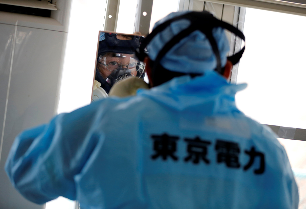 In most areas around the plant, workers no longer need to wear face masks and full body suits to protect against radiation. Only the reactor buildings or other restricted areas require special equipment.