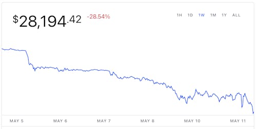 The value of bitcoin, which can fluctuate with as little as a post from Elon Musk, has dropped significantly in the wake of an ongoing war in Ukraine and rising inflation in the U.S. Bitcoin has now fallen below 50 percent of its all-time high.