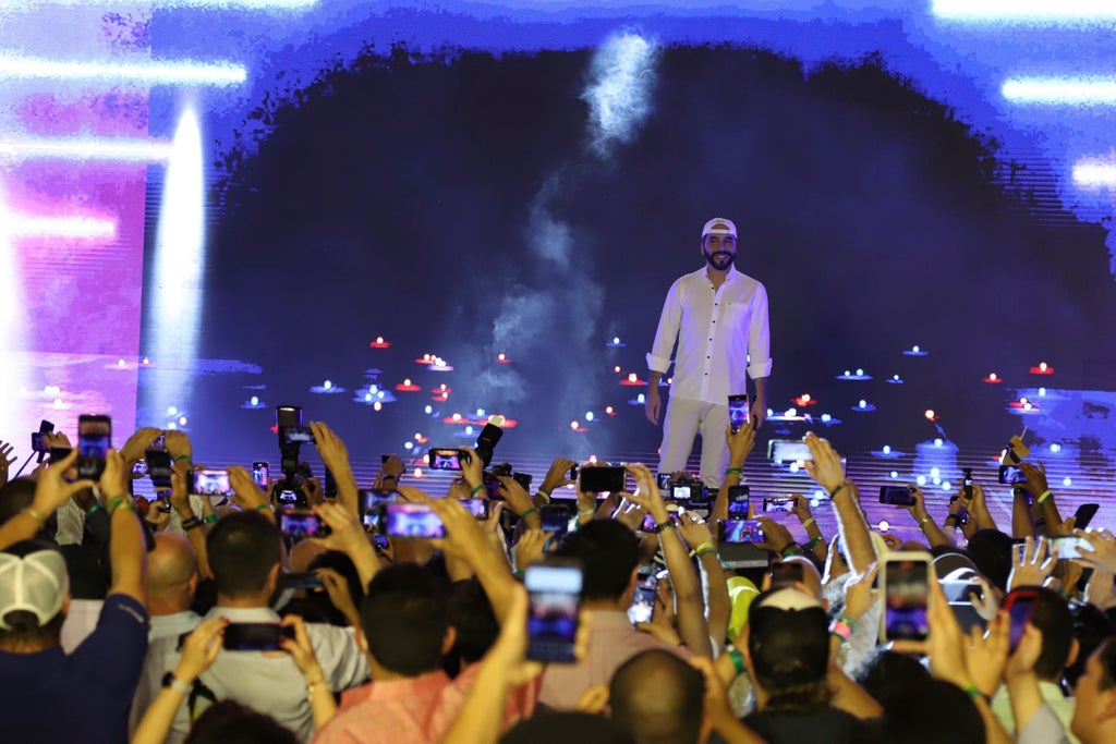 “Invest here and earn all the money you want,” Bukele told the cheering crowd in English.