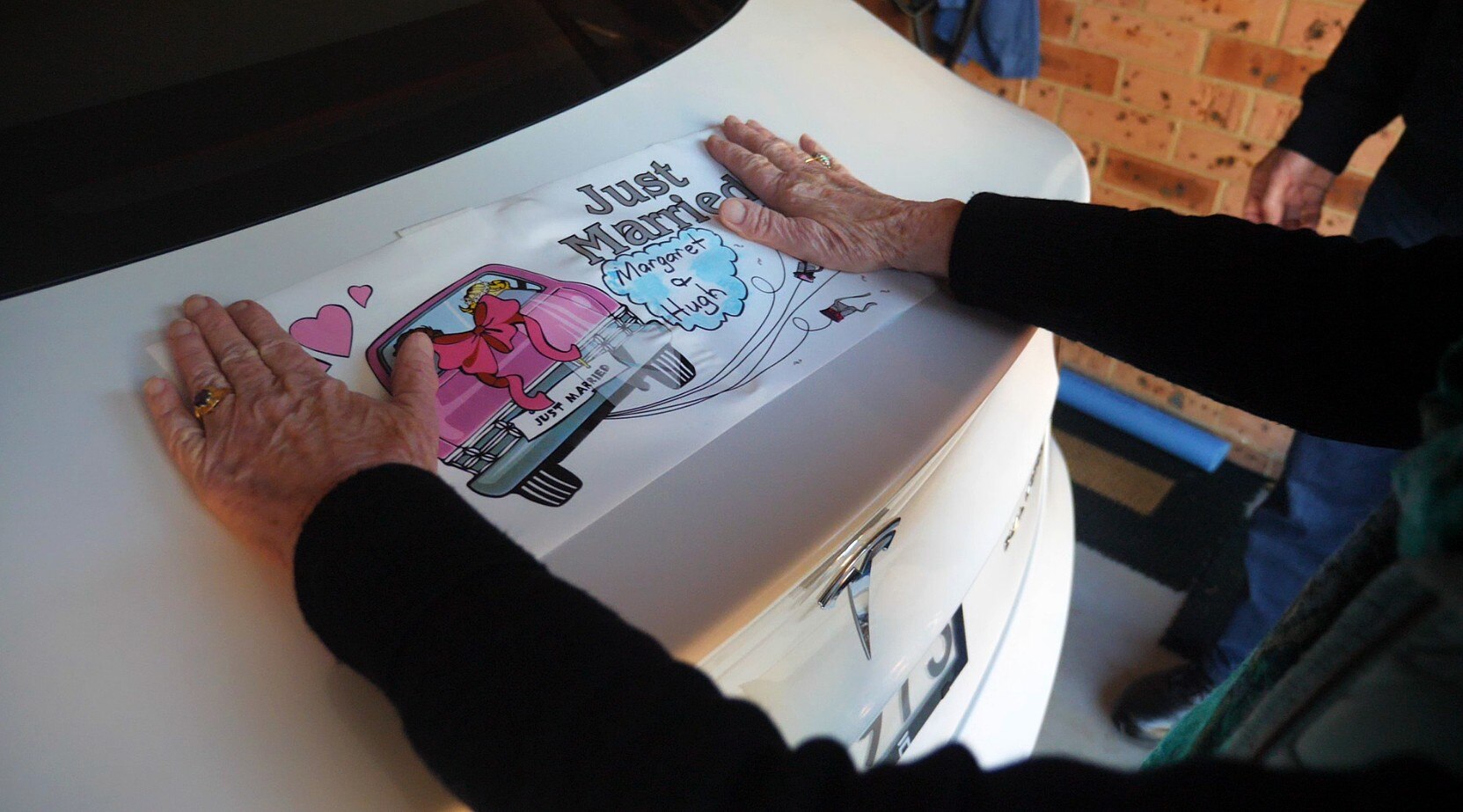 "[Hugh's] car is white and mine is coloured, and he thought it was more bridal than mine," Ms McDonald said.
