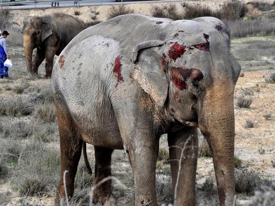 Pictures from the scene showed the elephants with large cuts on their faces, trunks and legs.
