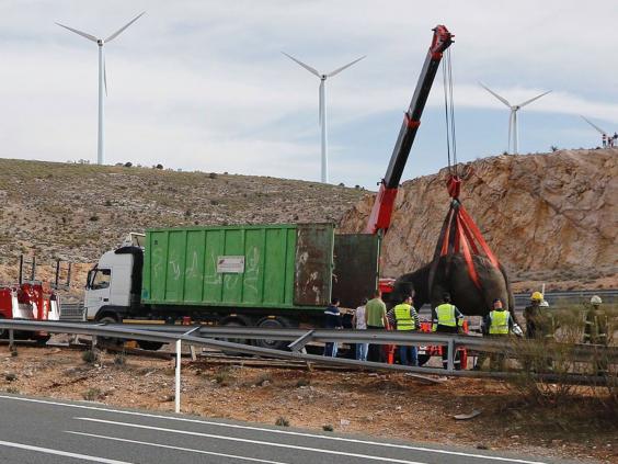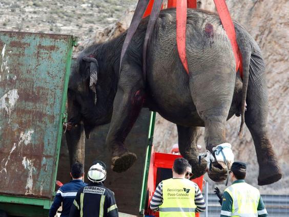 One elephant was killed and four others injured after a circus truck crashed on a Spanish motorway.