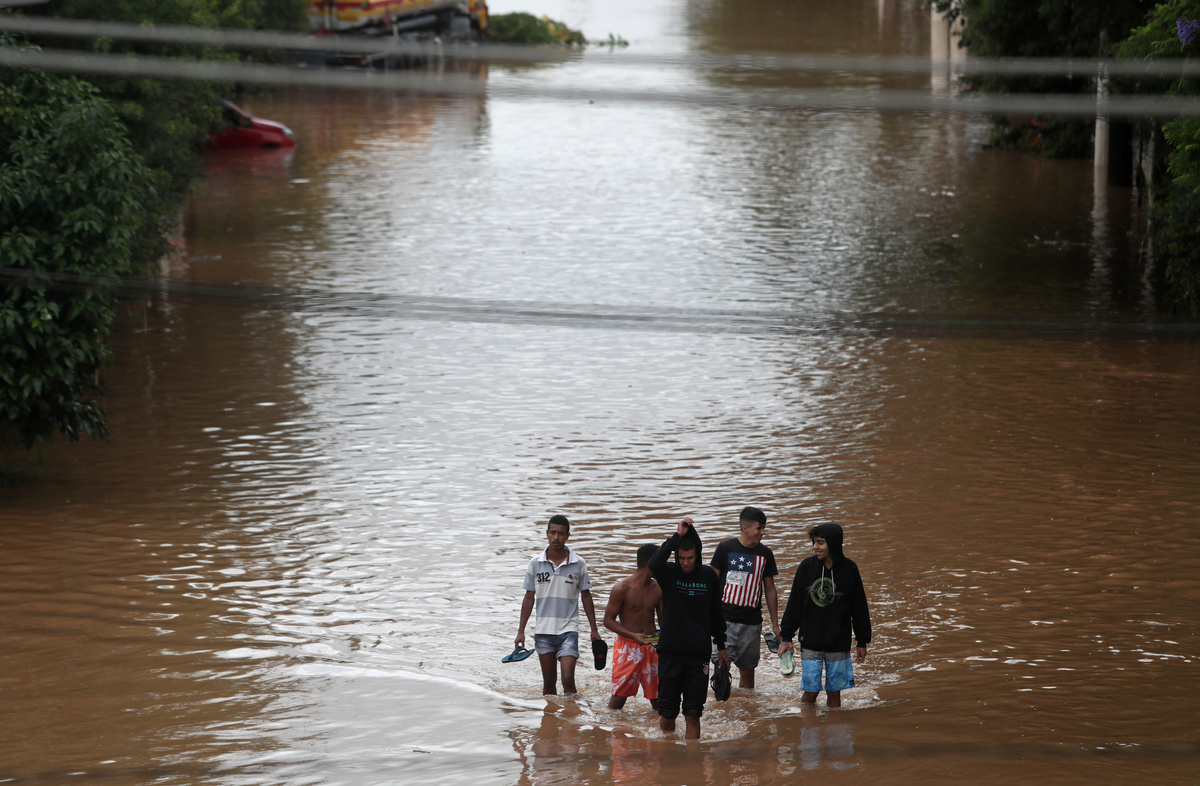 SAO PAULO (Reuters) - Intense floods in Latin America's business hub Sao Paulo killed at least 11 people, turned roads into rivers and tossed cars atop buildings and into trees, with authorities bracing for more rain Monday evening.