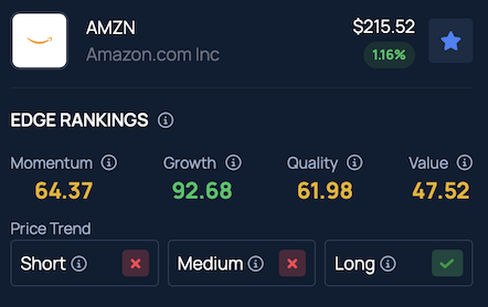 Benzinga's Edge Stock Rankings indicate that AMZN maintains a strong long-term price trend, though it shows weakness in the short and medium term. More detailed performance insights can be found here.