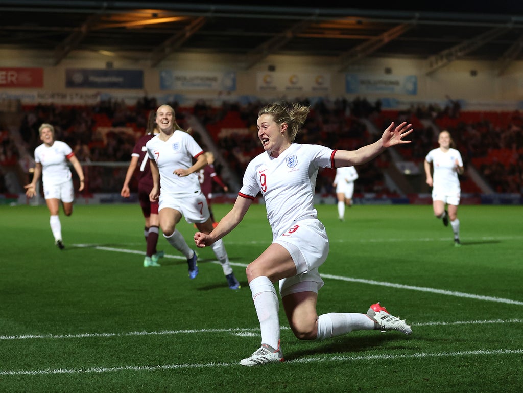 She was one of four hat-trick-scorers on the night – Lauren Hemp netted four times, while Beth Mead and substitute Alessia Russo also registered trebles.