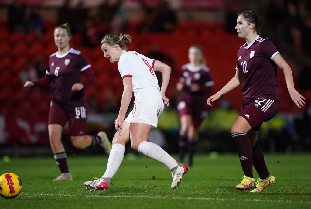 There was no let up for Latvia – 94 places below England at 102nd in the world rankings – as Mead registered her second of the contest in the 12th minute and Hemp headed home in the 18th for her first international goal. Mead then completed her hat-trick with a header another five minutes later to make it 6-0.