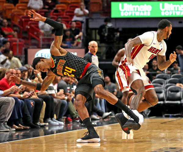The game then turned chippy in the third period, when Hawks forward Taurean Prince was assessed a Flagrant 1 foul for a shove against Dragic, with Dragic, Waiters and Hawks center Dewayne Dedmon called for technical fouls for the ensuring tussle. All three ensuing free throws were missed.
