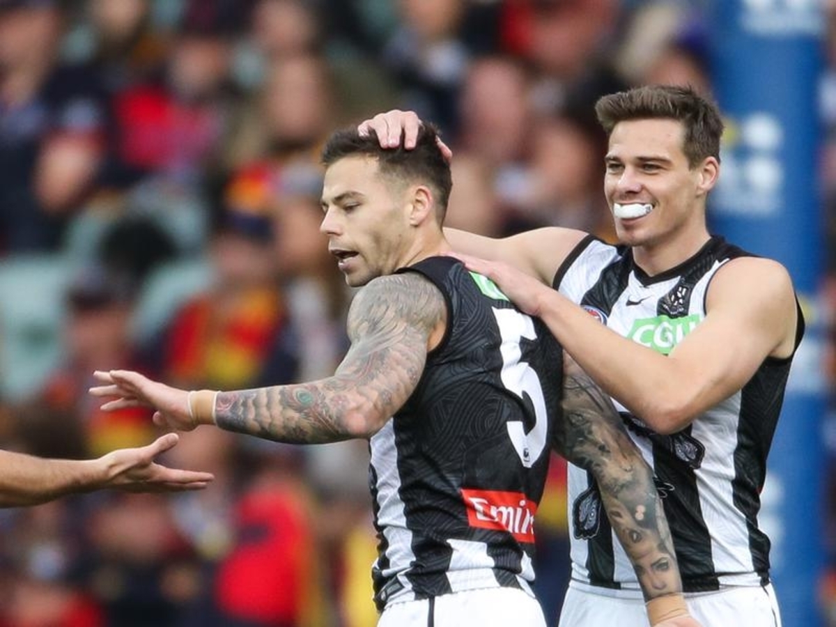 Magpies Jack Crisp (31 disposals), Caleb Poulter (20 disposals, one goal), Will Hoskin Elliott (21 touches) and Jordan De Goey (one goal) all had patches of influence.