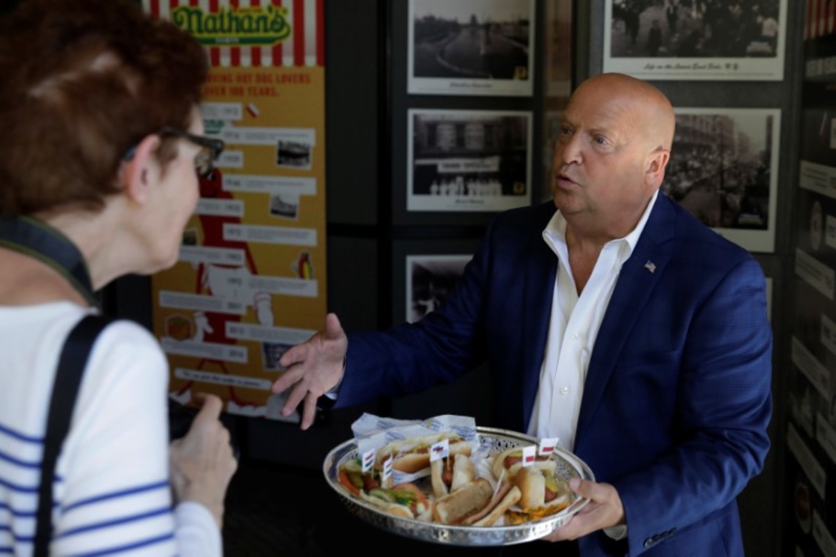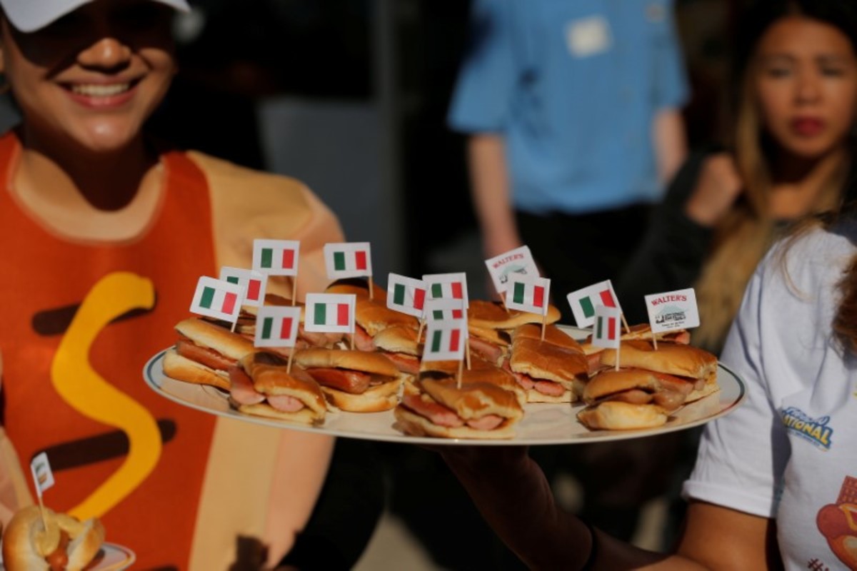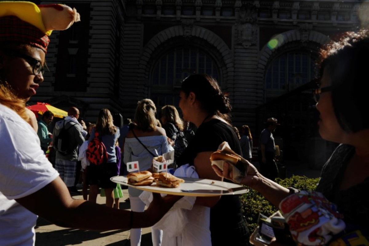 A woman gives away hot dogs from vendor Walter's on a platter during the opening of an exhibit at Ellis Island highlighting the immigrant history behind the "Hot Dog" in New York City, U.S., June 28, 2017. REUTERS/Lucas JacksonAttendees look at a newly opened exhibit at Ellis Island highlighting the immigrant history behind the "Hot Dog" in New York City, U.S., June 28, 2017. REUTERS/Lucas JacksonA woman gives away hot dogs from the vendor Walter's on a platter during the opening of an exhibit at Ellis Island highlighting the immigrant history behind the "Hot Dog" in New York City, U.S., June 28, 2017. REUTERS/Lucas JacksonA man cooks hot dogs from the vendor Walter's during the opening of an exhibit at Ellis Island highlighting the immigrant history behind the "Hot Dog" in New York City, U.S., June 28, 2017. REUTERS/Lucas JacksonA woman gives away hot dogs from vendor Sabrett during the opening of an exhibit at Ellis Island highlighting the immigrant history behind the "Hot Dog" in New York City, U.S., June 28, 2017. REUTERS/Lucas JacksonA woman eats a hot dog as she attends a celebration marking the opening of a new exhibit at Ellis Island highlighting the immigrant history behind the "Hot Dog" in New York City, U.S., June 28, 2017. REUTERS/Lucas JacksonA woman stands near hot dogs stands as vendors celebrate a newly opened exhibit at Ellis Island highlighting the immigrant history behind the "Hot Dog" in New York City, U.S., June 28, 2017. REUTERS/Lucas JacksonA woman gives a child a hot dog from the vendor Nathan's during the opening of an exhibit at Ellis Island highlighting the immigrant history behind the "Hot Dog" in New York City, U.S., June 28, 2017. REUTERS/Lucas JacksonA woman eats a hot dog as she attends a celebration marking the opening of a new exhibit at Ellis Island highlighting the immigrant history behind the "Hot Dog" in New York City, U.S., June 28, 2017. REUTERS/Lucas JacksonA man eats a hot dog as he attends a celebration marking the opening of a new exhibit at Ellis Island highlighting the immigrant history behind the "Hot Dog" in New York City, U.S., June 28, 2017. REUTERS/Lucas JacksonA man eats a hot dog as he attends a celebration marking the opening of a new exhibit at Ellis Island highlighting the immigrant history behind the "Hot Dog" in New York City, U.S., June 28, 2017. REUTERS/Lucas JacksonaA woman stands near hot dogs stands as vendors celebrate a newly opened exhibit at Ellis Island highlighting the immigrant history behind the "Hot Dog" in New York City, U.S., June 28, 2017. REUTERS/Lucas Jackson