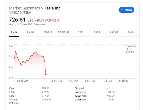 Well, fret not, Elon, your shares are plummeting now.