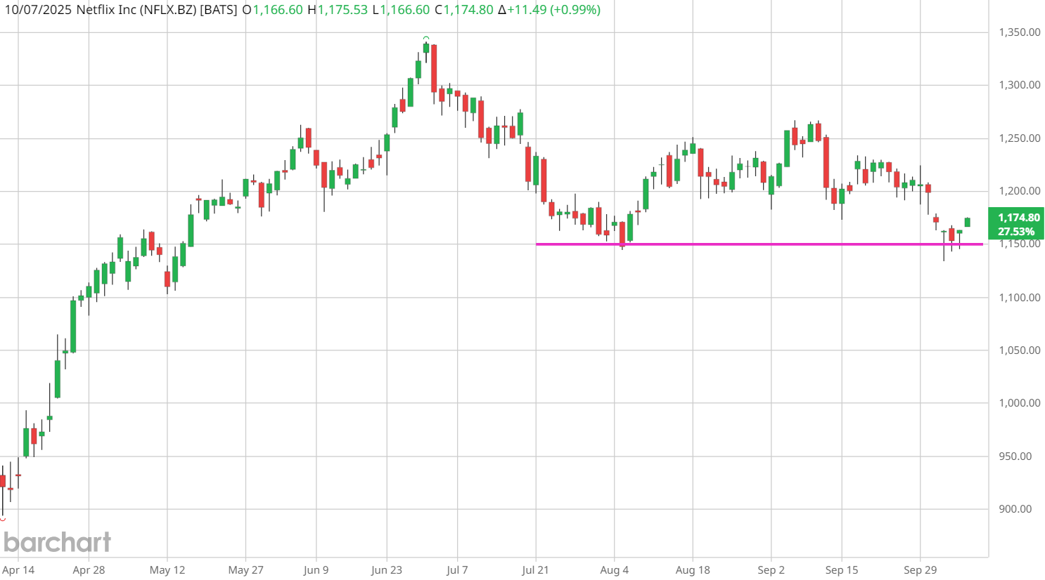 John explained that if Netflix breaks below the $1,140–$1,150 range, it could retest support at a gap near $1,000 — about a 10% move lower from current levels.