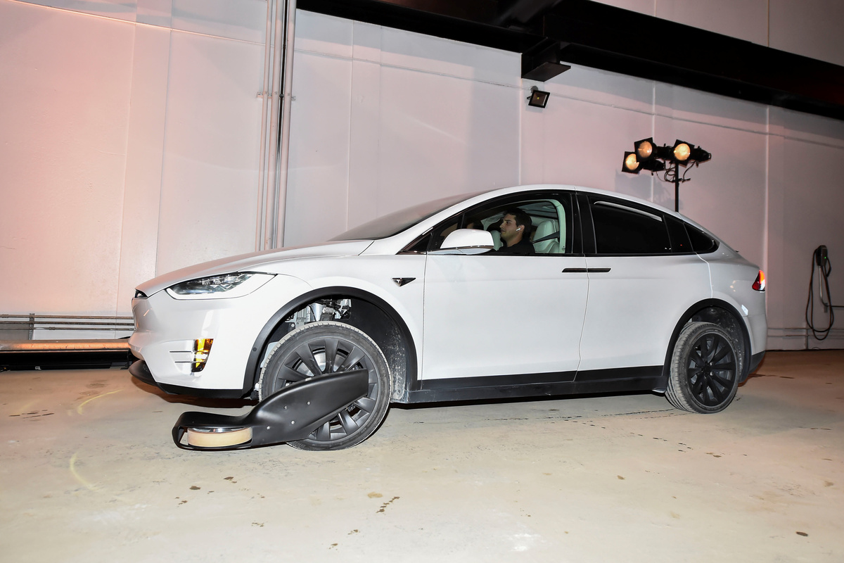 But he showed pre-recorded video footage of a newly built elevator station designed to carry passengers from street level to the tunnel's subterranean entryway. The video featured a modified Tesla Model X luxury car on the elevator.
