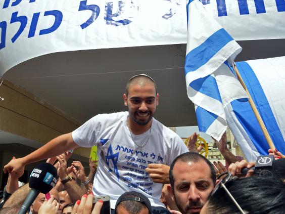 Azaria was greeted by supporters and banners welcoming his release, which read: “Welcome home, Elor the hero.”