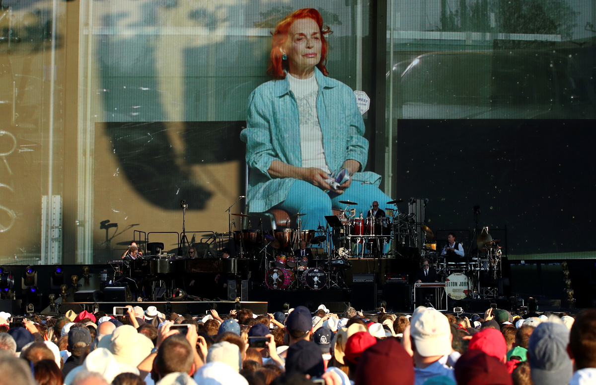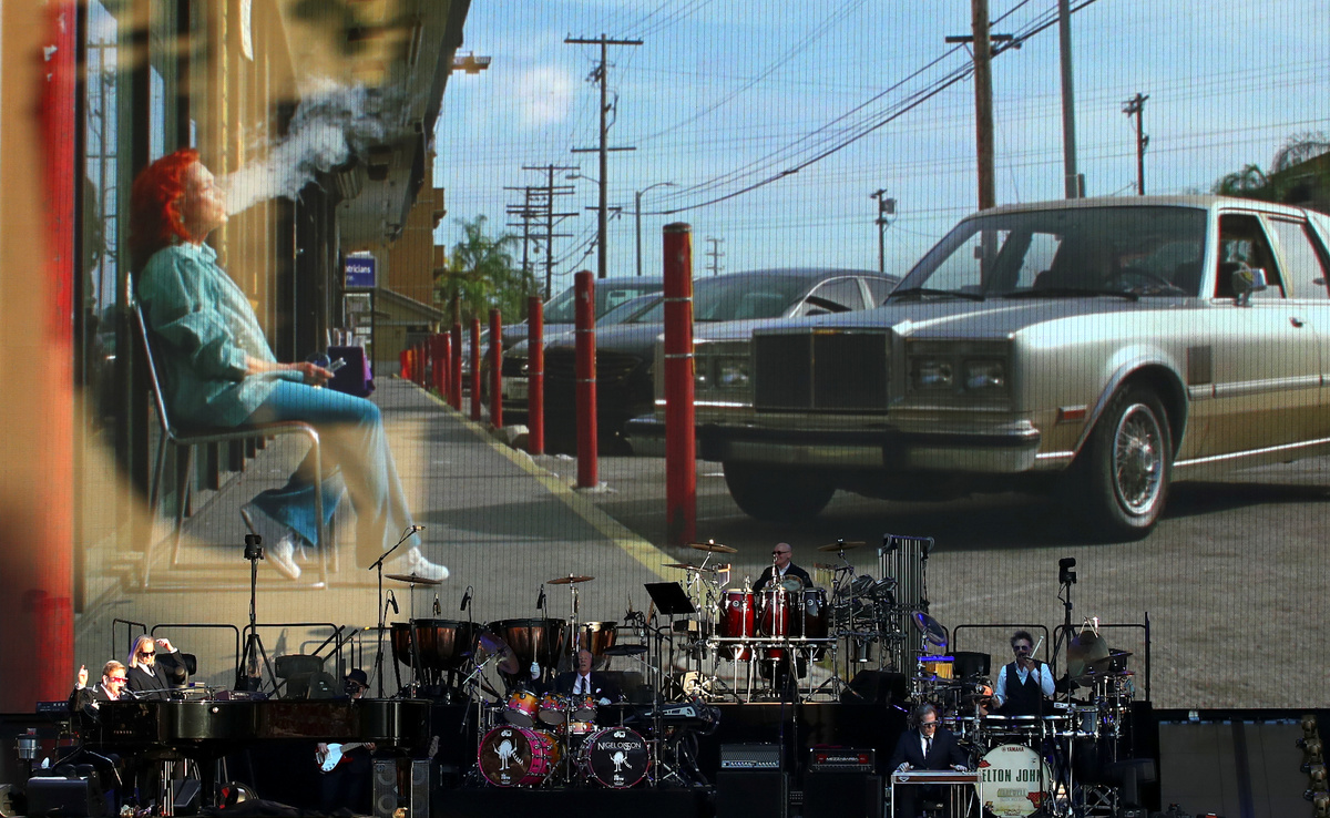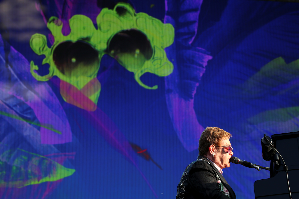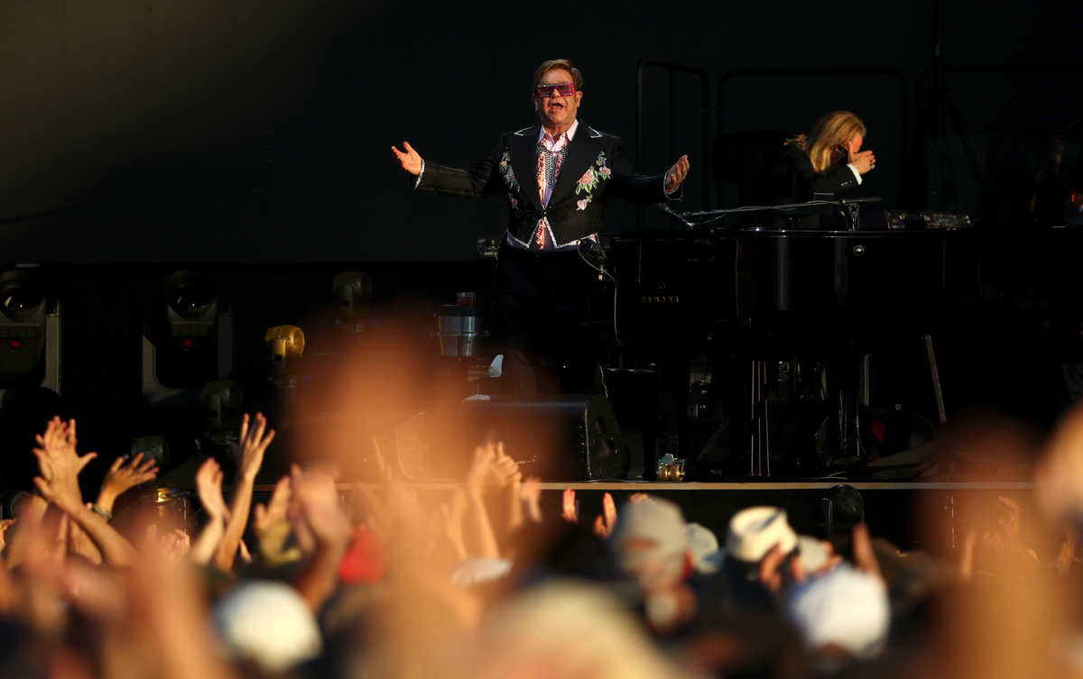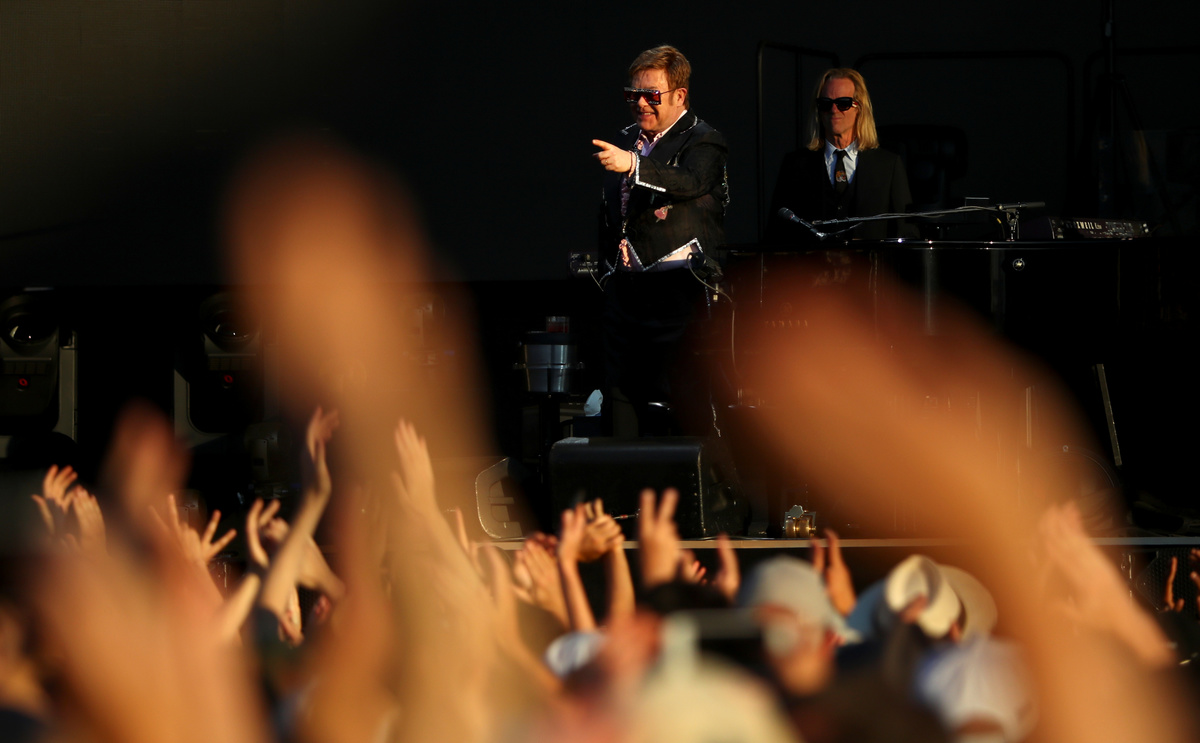 "Sorry", "Someone Saved My Life Tonight", "Candle in the Wind", "Daniel" and "Saturday Night's Alright" were other signature songs, accompanied by his band including longtime drummer Nigel Olsson and guitarist John Jorgenson.