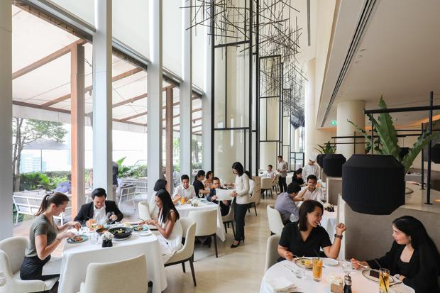 Savour the flavours in a low-key earth tones ambiance anchored in a vibrant open culinary laboratory where the white jacket chefs craft each dish in live culinary theatre. Choose the main dining room where well-spaced tables also overlook a window wall framing gardens between high-rises, and just one or two exclusively-commissioned stunning art installations. Here the views of the greenery by day and tenebres by night are complemented with a soundtrack that segues between slinky lounge, sensuous jazz and eternal melodies. All engagingly bound by gracious and memorable service at every moment.