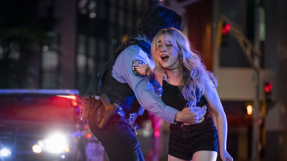 Cut to a rager of a party where Buchanan student Maddie (Sabrina Carpenter) has been so busy partying she’s lost track of her little sister, Emma, who has gone missing—and that’s how we learn the identity of the girl who keeps drifting in and out of consciousness in the van as Kunle, Sean and Carlos keep making a bad situation worse and find themselves in real danger more than once. Maddie and her best friend Alice (Madison Thompson) and Alice’s new crush Rafael (Diego Abraham) track Emma’s phone and start following the van.