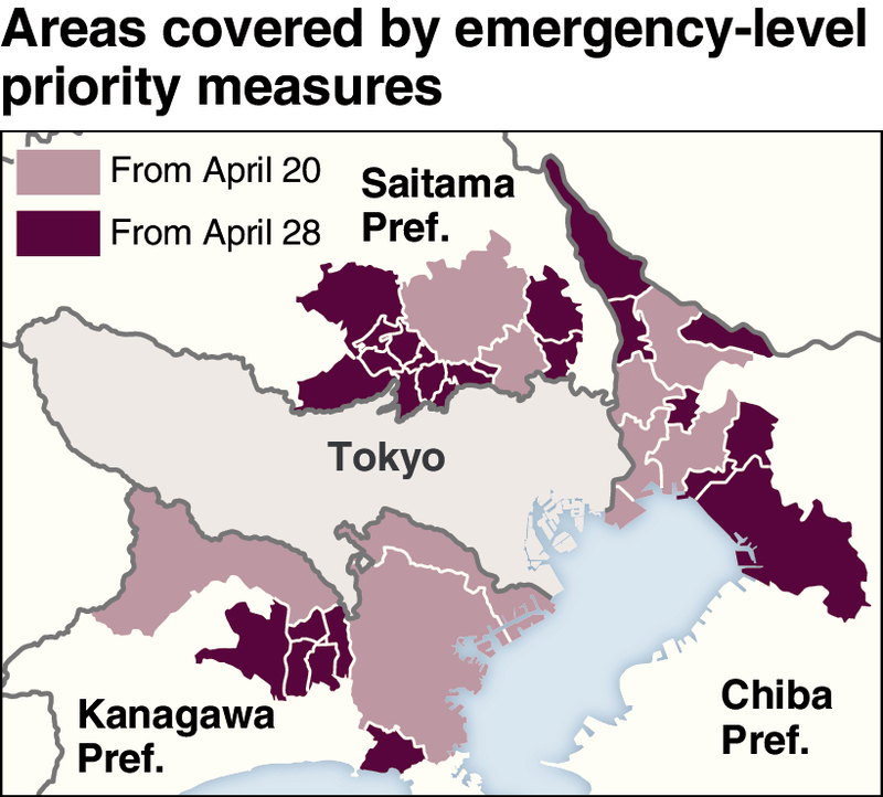 The three prefectures of Kanagawa, Chiba and Saitama have decided to expand the areas covered by emergency-level priority measures, in a bid to prevent the further spread of the novel coronavirus.