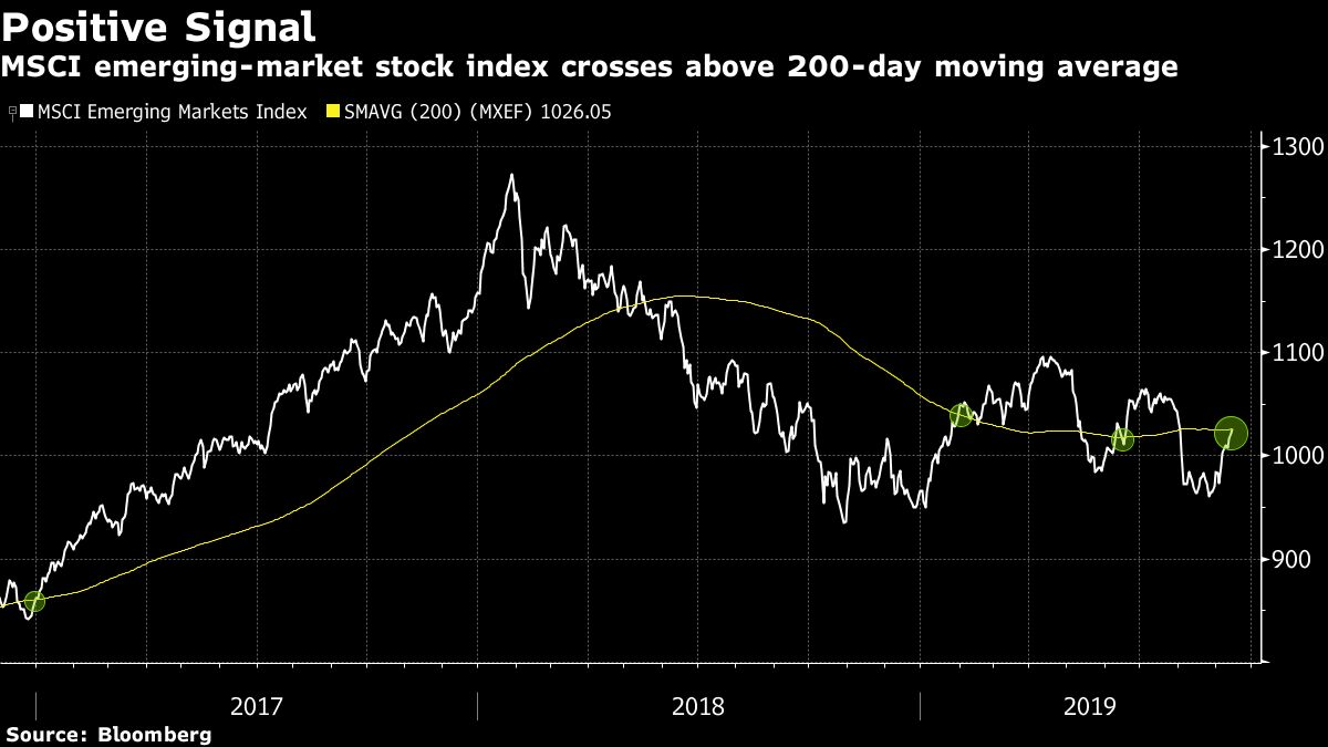 Developing-nation stocks, as measured by a MSCI index, climbed for a fourth week to break above their 200-day moving average on Friday, heralding further gains, though oil-related news may slow any advances. Meantime, a gauge of emerging-market currencies approached its 100-day average after advancing 1.6% since end-August. The European Central Bank said Thursday it would restart quantitative easing.