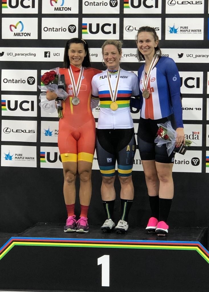 In 2019, she went on to win her first world championship title in the individual time trial and then claimed another four world titles in the women's pursuit C4 (2019 and 2020), women's omnium C4 (2020) and women's scratch race C4 (2020).