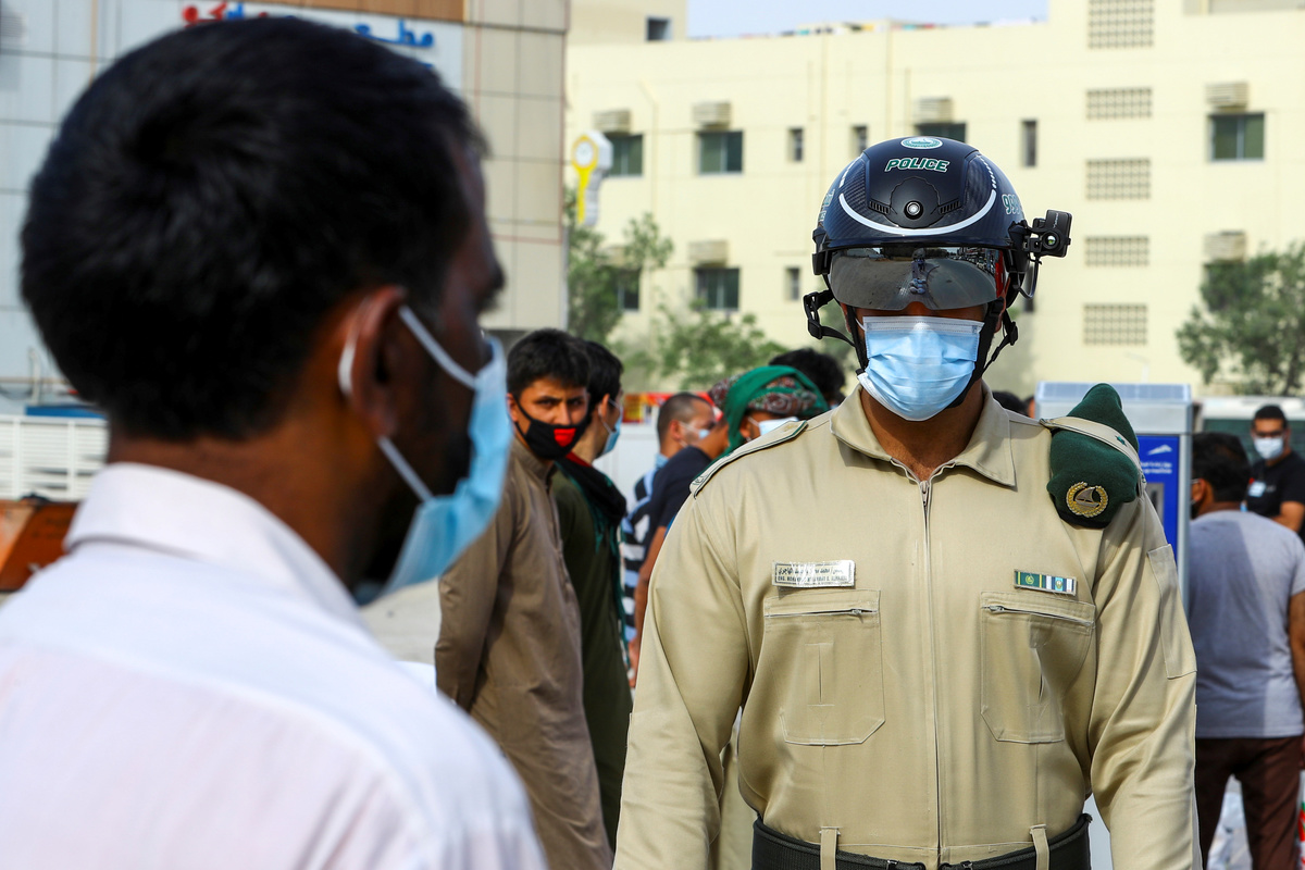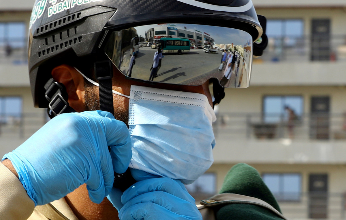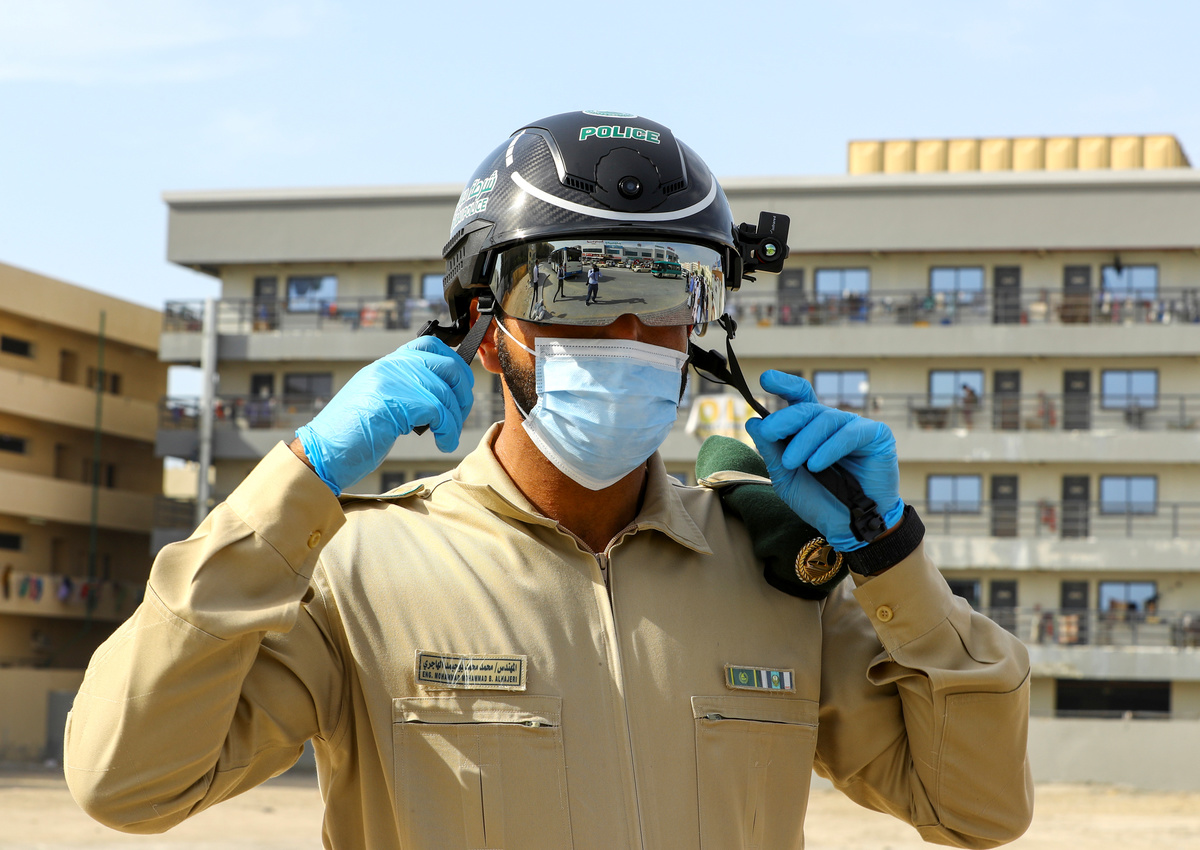 A police officer wears a smart helmet as he uses it to check the temperature of workers during the outbreak of the coronavirus disease (COVID-19) in Dubai, United Arab Emirates April 23, 2020. REUTERS/Ahmed JadallahA police officer wears a smart helmet as he uses it to check the temperature of the workers, during the outbreak of the coronavirus disease (COVID-19) in Dubai, United Arab Emirates April 23, 2020. REUTERS/Ahmed JadallahWorkers wear protective face masks during the outbreak of the coronavirus disease (COVID-19) in Dubai, United Arab Emirates April 23, 2020. REUTERS/Ahmed JadallahGeneral view of a workers' accommodation during the outbreak of the coronavirus disease (COVID-19) in Dubai, United Arab Emirates April 23, 2020. . kREUTERS/Ahmed JadallahWorkers wear protective face masks during the outbreak of the coronavirus disease (COVID-19) in Dubai, United Arab Emirates April 23, 2020. REUTERS/Ahmed JadallahWorkers wear protective face masks during the outbreak of the coronavirus disease (COVID-19) in Dubai, United Arab Emirates April 23, 2020. REUTERS/Ahmed JadallahWorkers wear masks during the outbreak of the coronavirus disease (COVID-19) in Dubai, United Arab Emirates April 23, 2020. REUTERS/Ahmed JadallahA police officer wears a smart helmet as he uses it to check the temperature of workers during the outbreak of the coronavirus disease (COVID-19) in Dubai, United Arab Emirates April 23, 2020. REUTERS/Ahmed JadallahA police officer wears a smart helmet as he uses it to check the temperature of workers during the outbreak of the coronavirus disease (COVID-19) in Dubai, United Arab Emirates April 23, 2020. REUTERS/Ahmed JadallahA police officer wears a smart helmet as he uses it to test the temperature of workers during the outbreak of the coronavirus disease (COVID-19) in Dubai, United Arab Emirates April 23, 2020. REUTERS/Ahmed JadallahA police officer wears a smart helmet as he uses it to test the temperature of the people during the outbreak of the coronavirus disease (COVID-19) in Dubai, United Arab Emirates April 23, 2020. REUTERS/Ahmed Jadallah