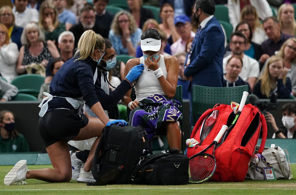 Raducanu had been noticeably struggling to breathe and, after consulting with the trainer and doctor, she took a medical timeout where it was deemed she could not continue.