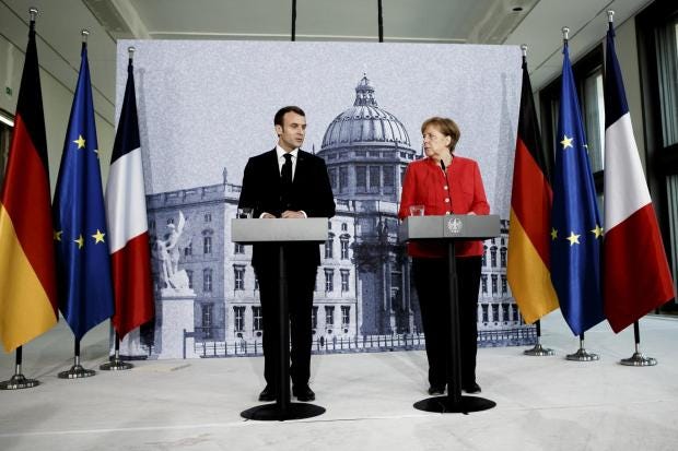 But speaking alongside his political partner at a press conference in Berlin, Mr Macron said there was a “unique” opportunity to reform now.