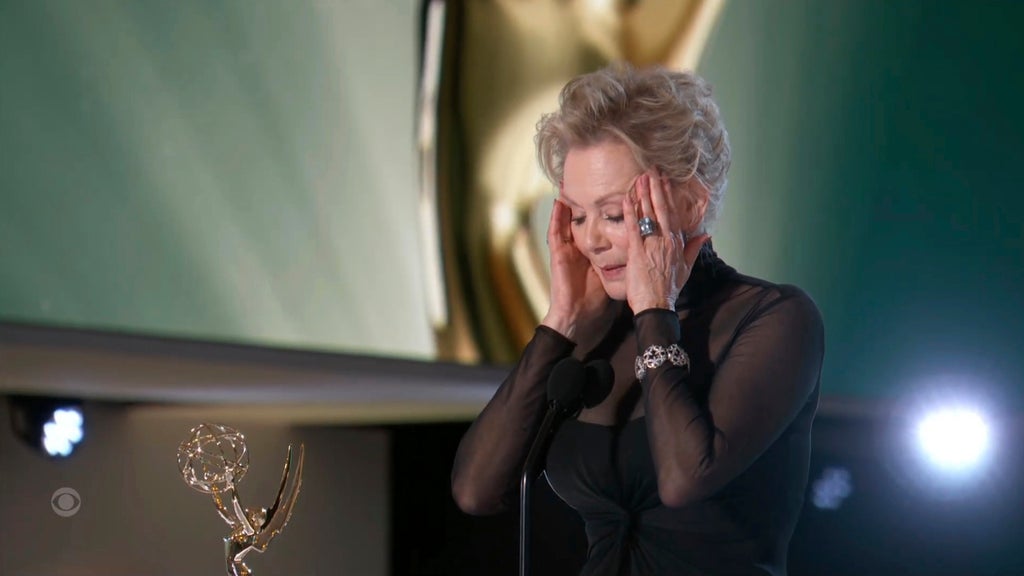 Jean Smart held back tears while accepting the best actress in a comedy series Emmy for her role in “Hacks,” which she dedicated to her late husband.